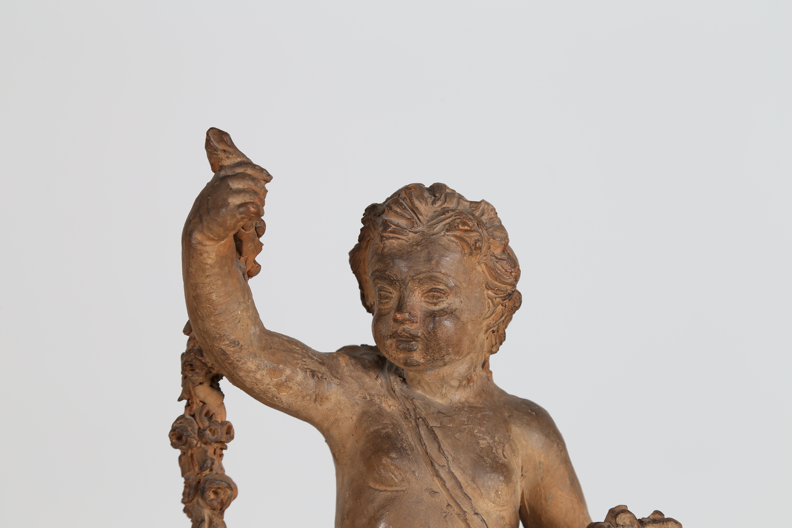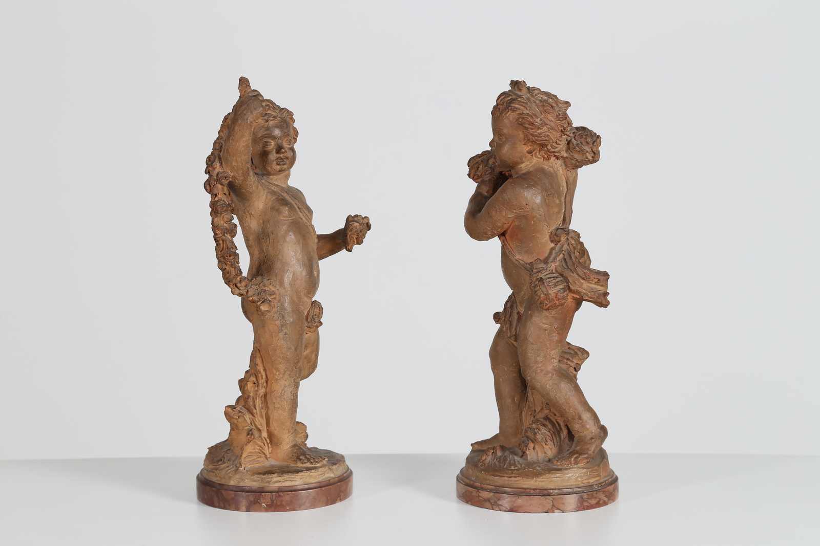 ARTISTA FRANCESE DEL XVIII SECOLO Coppia di putti in terracotta su base in...