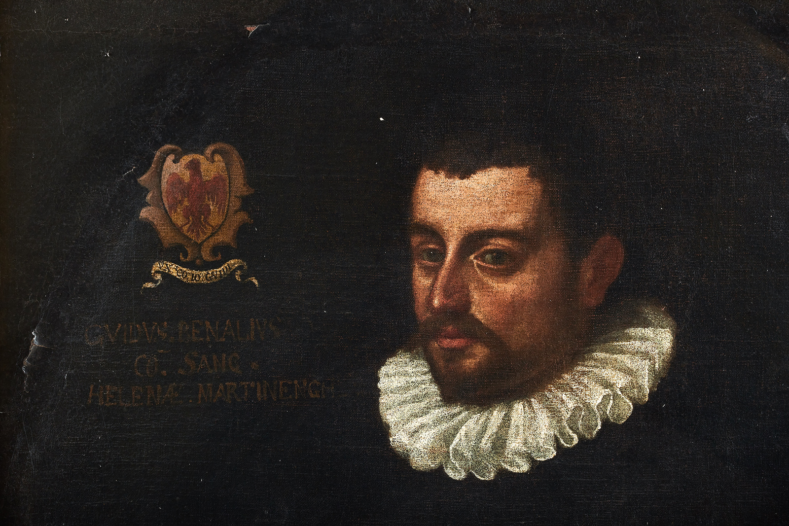 ARTISTA VENETO DEL XVI SECOLO Ritratto di Guido Benaglia. Olio su tela . Cm 94,00 x 117,00.