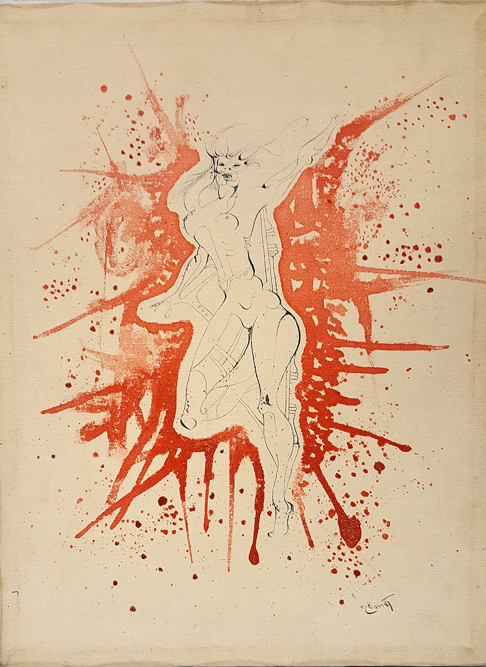 Antonio Cannata, "Figura surrealista", tecnica mista su tela cm 40x30, firma in basso a destra