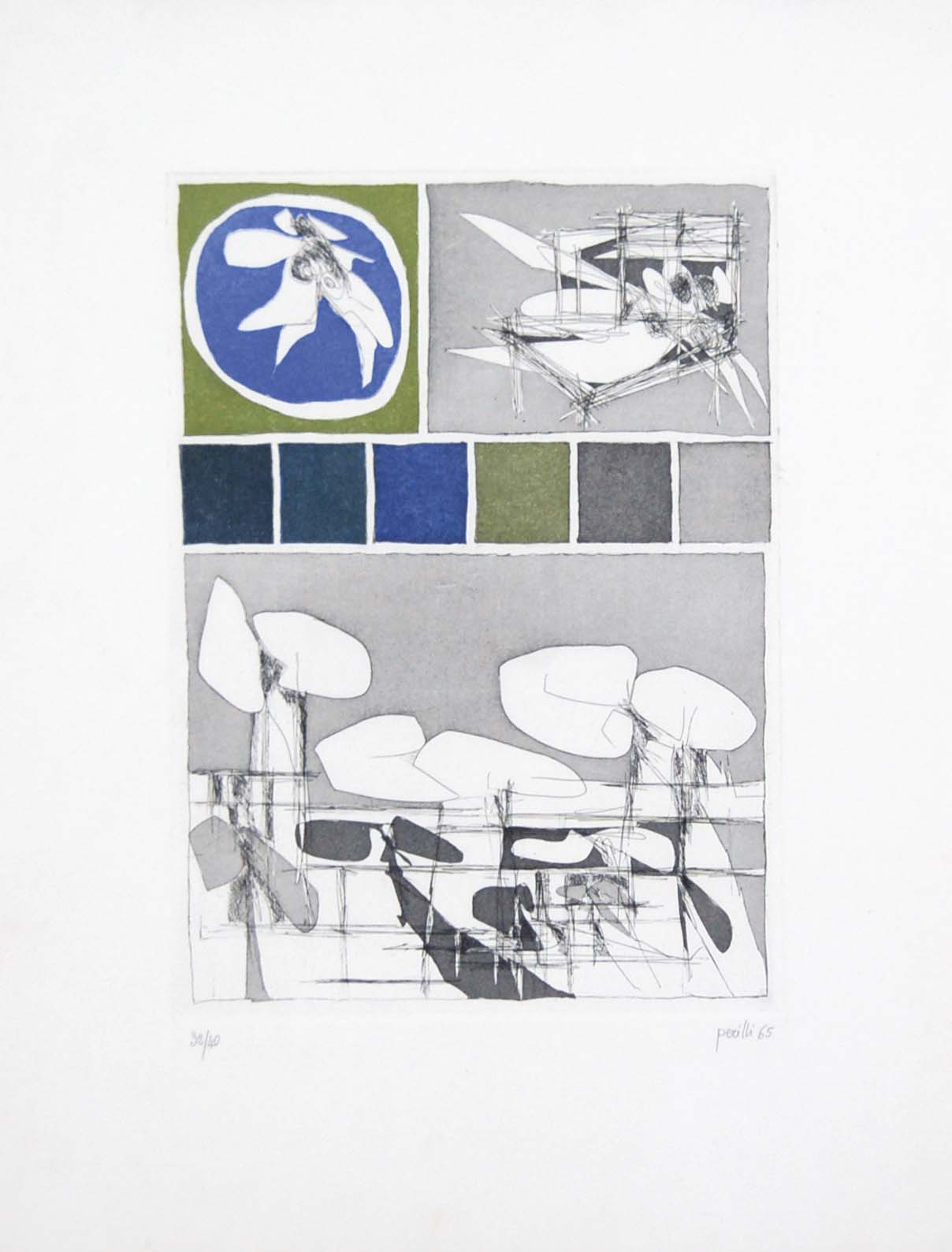 PERILLI ACHILLE Roma 1927 Composizione a quattro 1965 acquaforte acquatinta...