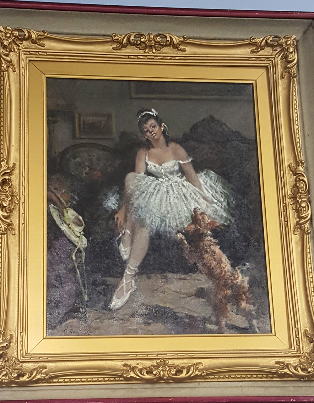 Giovanni Dominech, "Ballerina", olio su tela cm 50x40, firma in basso a sinistra ed al retro con titolo