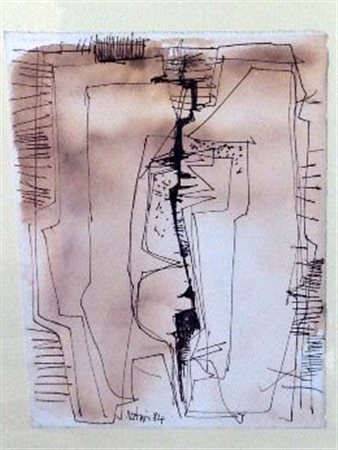 Gualtiero Nativi, "Studio", 1984, china e acquerello su carta cm 28x20, opera pubblicata su Catalogo Corrado Cagli e Gualtiero Nativi, con autentica su foto