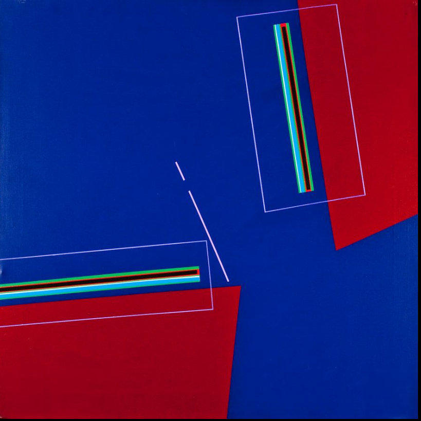 Martino Mazzoleni, "Composizione astratta", olio su tela cm 70x70, firma titolo e anno al retro, certificato Luca Sforzini Arte