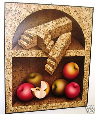 Vanni Viviani, "Mele e struttura", olio su tela cm 70x60, firma in basso al centro