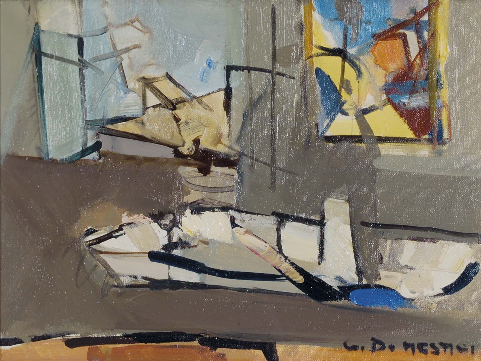 DOMESTICI GIAMPAOLO Venezia 1924 - 1999 Interno 1973 olio su tela 30x40 cm firma in basso a destra