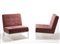 Florence Knoll (1917) Coppia di poltroncine "Lounge chair". Produzione Knoll International, New York, anni 60. Struttura in profilato metallico cromato, rivestimento in velluto viola (cm 72x81x77) (difetti) Bibliografia: "Rivista dell'arredamento", n. 114, giugno 1964, p. 25