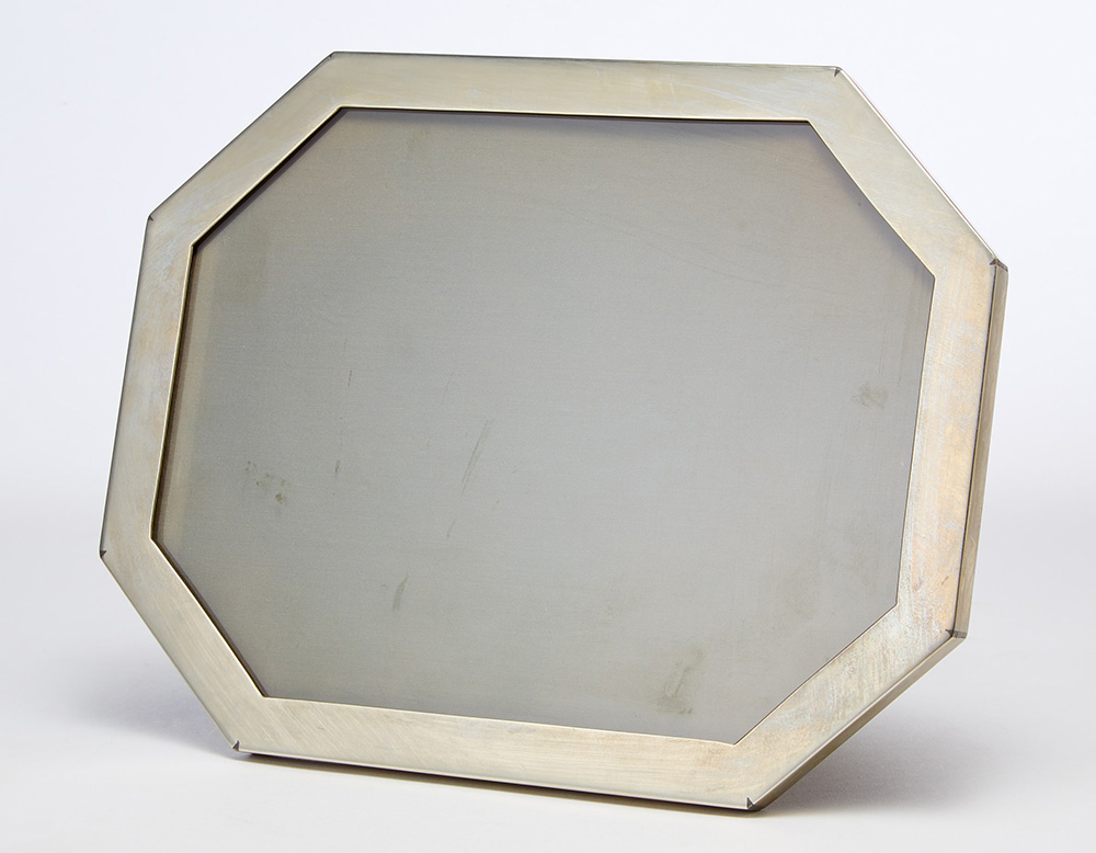 Gabriella Crespi (Milano 1922 - Milano 2017) Cornice portaritratto ottagonale in ottone nichelato, Milano 1965. Firmato a incussione sul bordo "Gabriella Crespi" (cm 27,5x21,5) (difetti) Provenienza: Showroom Gabiella Crespi, via Montenapoleone, Milano Collezione privata Accompagnata da dichiarazione di autenticità dell'Archivio Gabriella Crespi, Milano