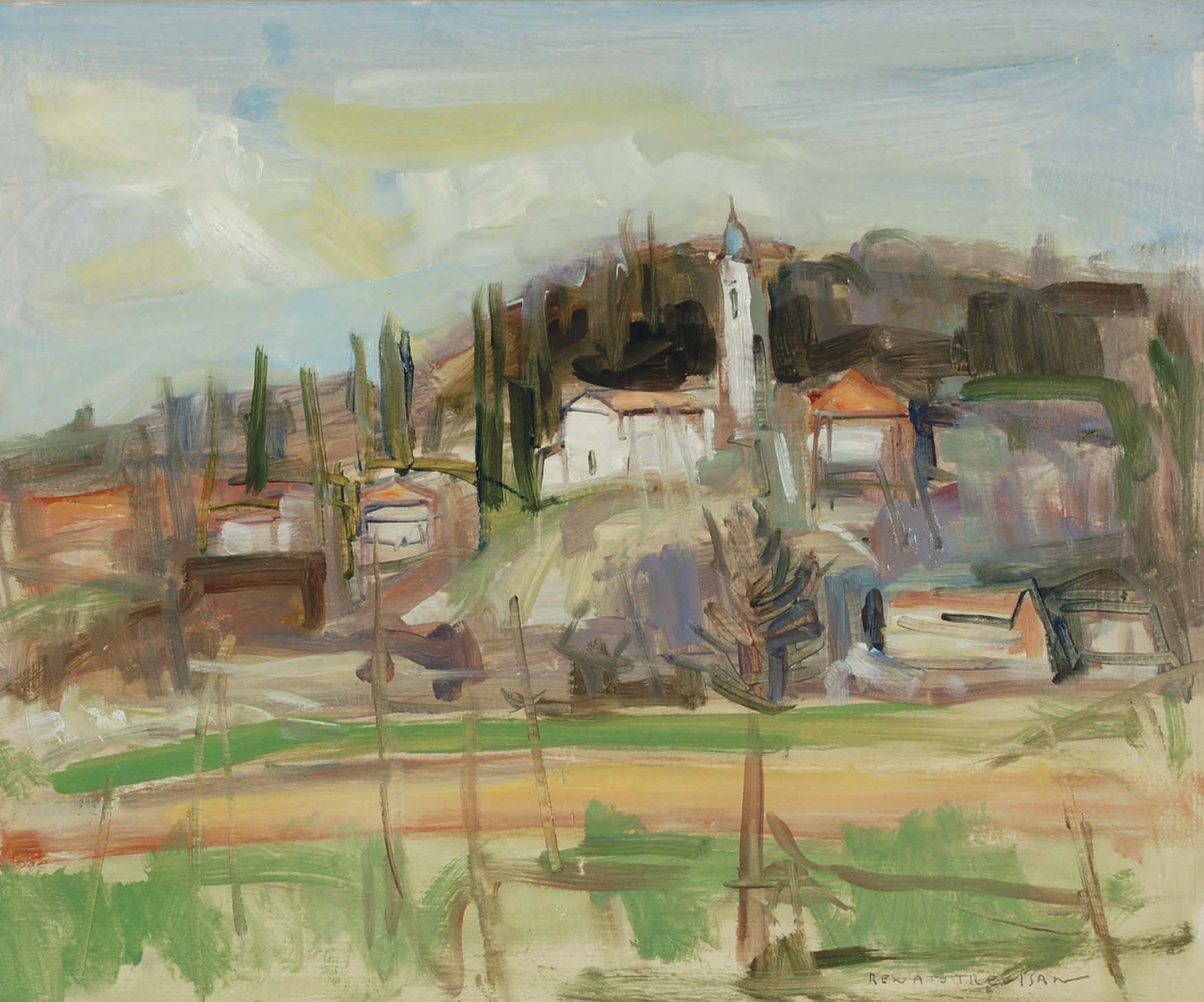 TREVISAN RENATO Noale 1941 Paesaggio olio su tavola 40x48 cm firma in basso a...