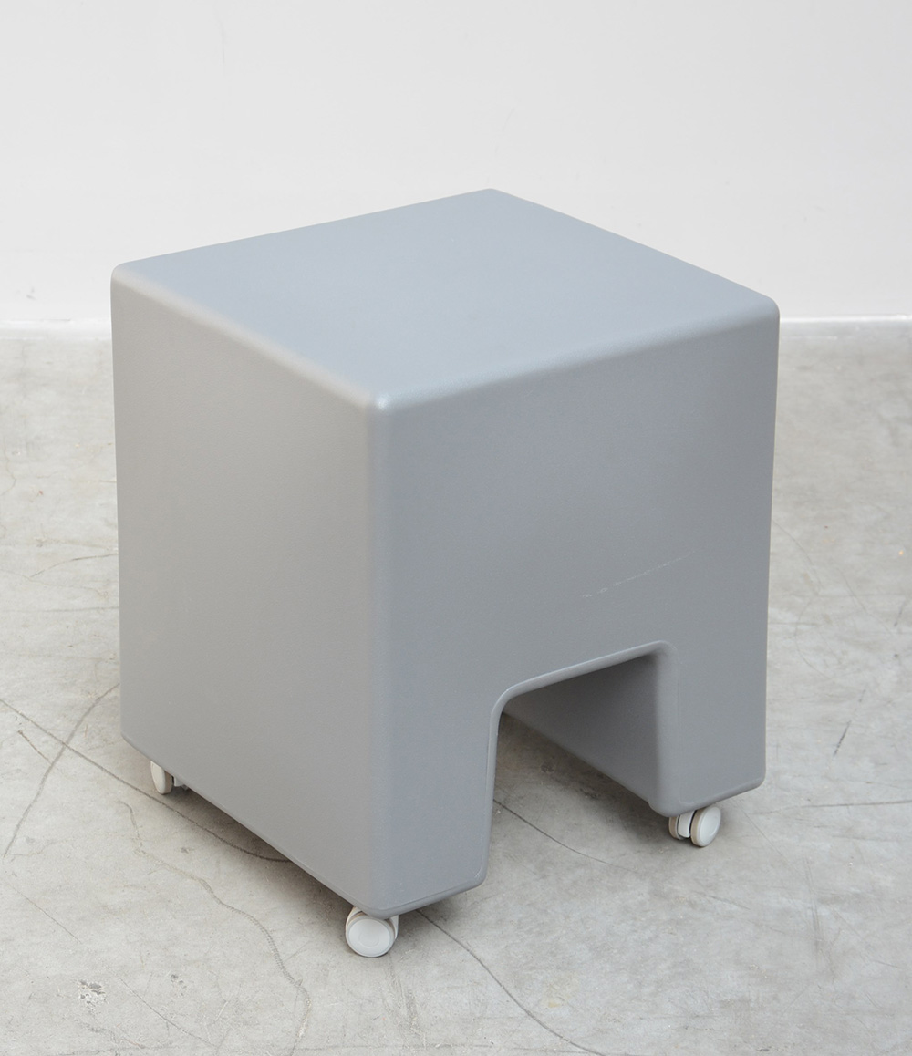 Bruno Rainaldi Pouf con ruote modello "Puffotto". Produzione Sintesi. Polipropilene grigio (cm 40x44x40) (lievi difetti)