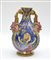 Santarelli "Messaggera Ullania" Vaso biansato in ceramica decorato a lustro su fondo blu con motivi rinascimentali, volute, cornucopie fiorite e figura femminile ispirata all'Orlando Furioso di Ludovico Ariosto. Anse a tritoni a tutto tondo. Gualdo Tadino, Prima metà del sec XX ( h cm 33) (lievi difetti e restauri)