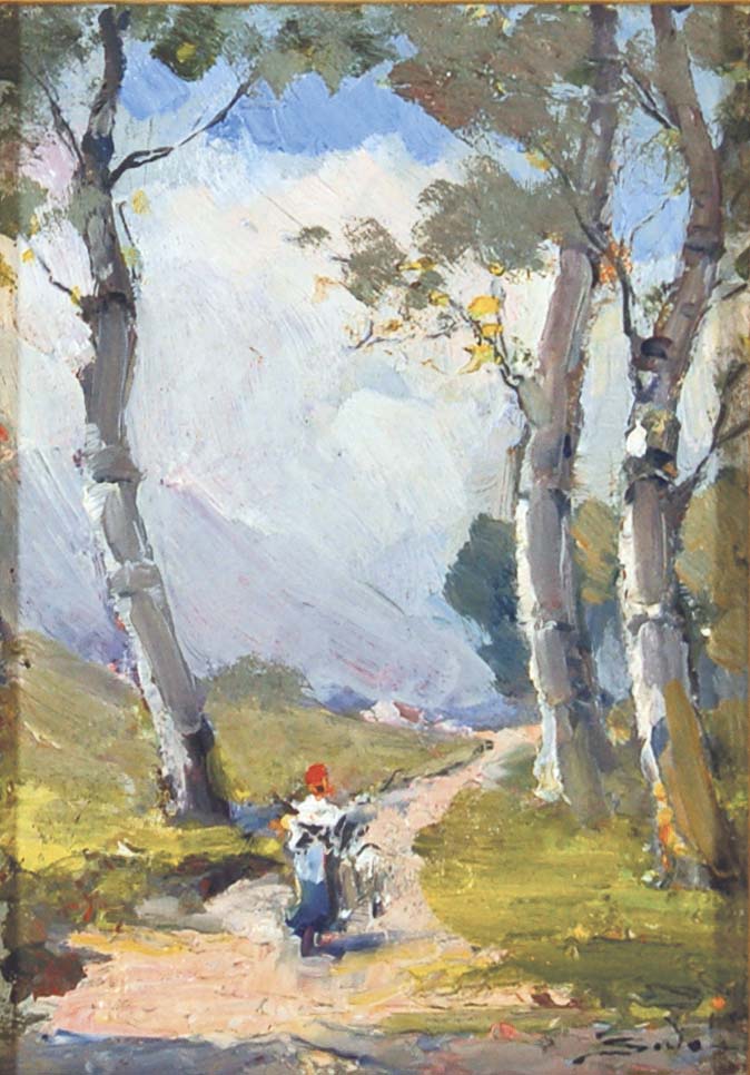 SIDOLI PACIFICO Piacenza 1868-1963 Alberi olio su cartoncino 17x12 cm firma in basso a destra