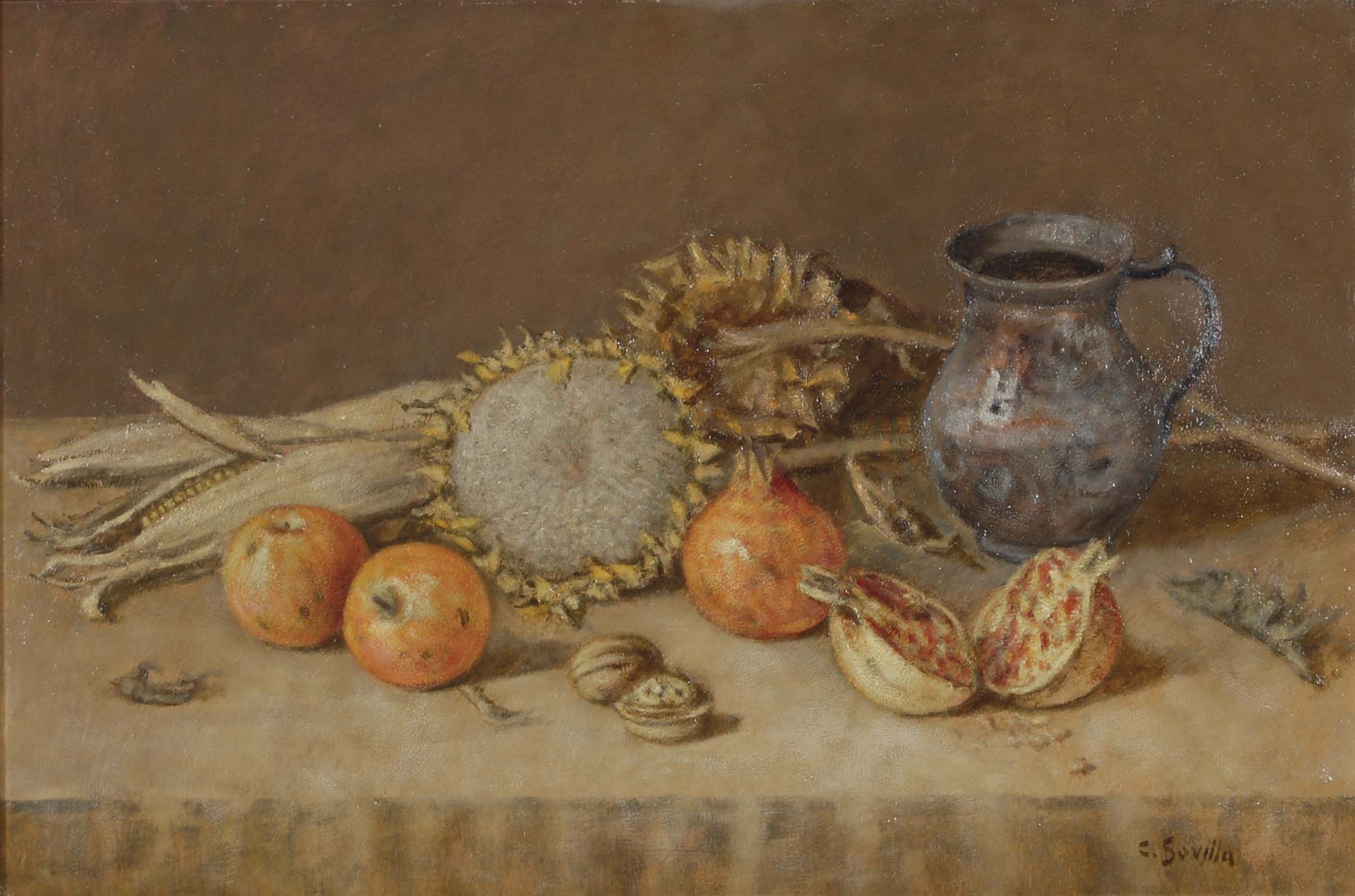 SOVILLA CARLO Belluno 1928 Natura morta olio su tavola 40x60 cm firma in basso a destra e al retro su etichetta dell'Autore