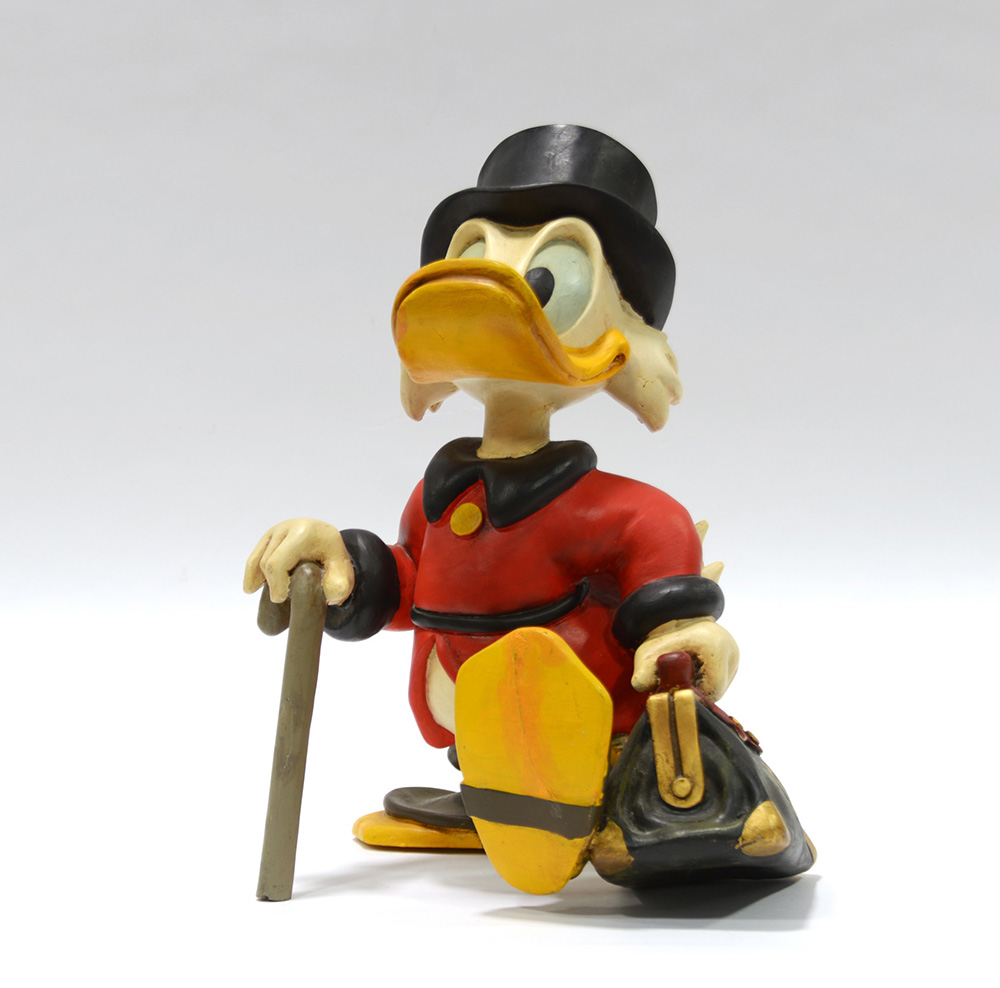 Zio Paperone. Resina policroma. Marcato "© DISNEY" e recante etichetta cartacea "Made in Philiphines" (h cm 52) (difetti e restauri)