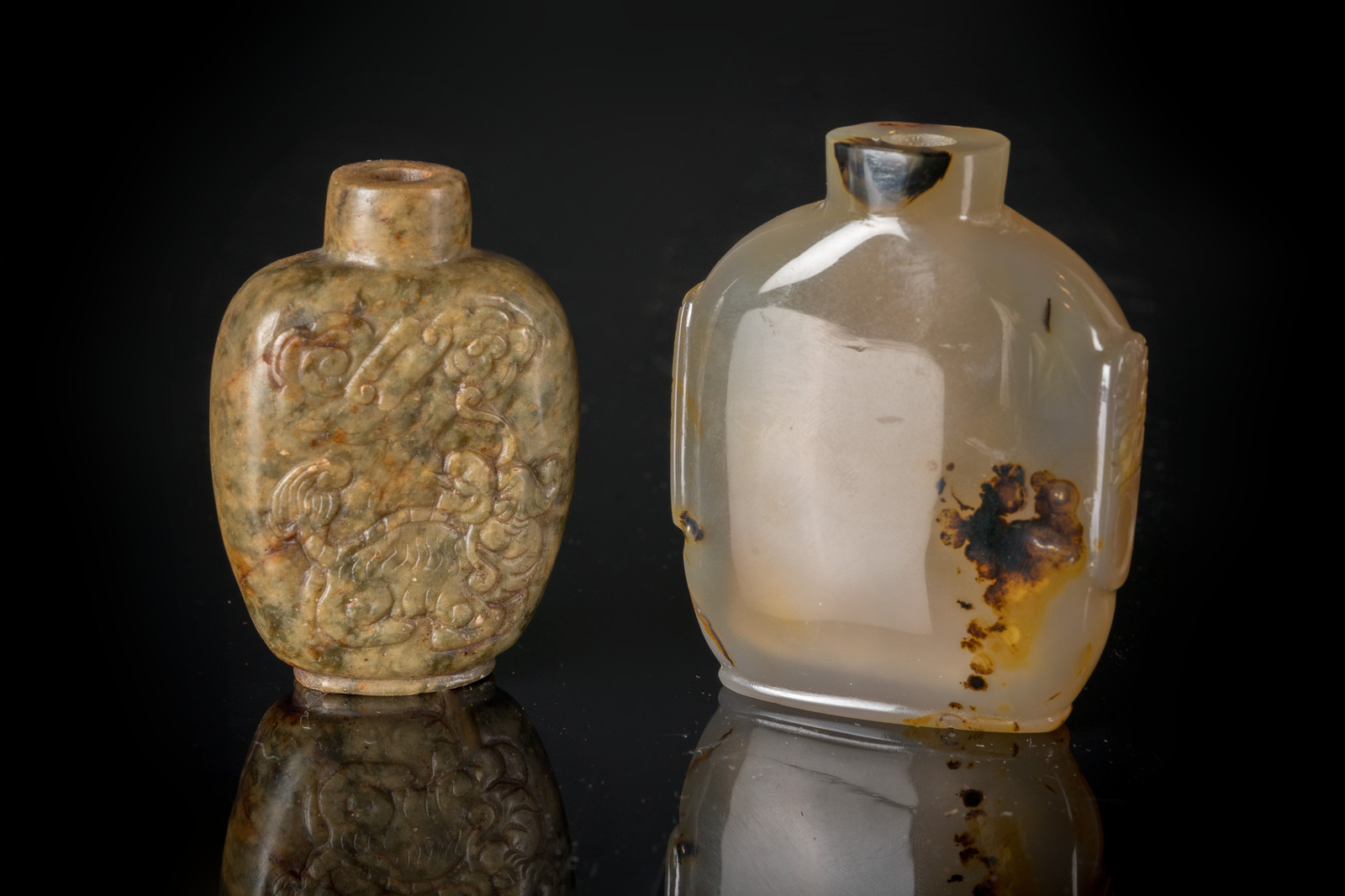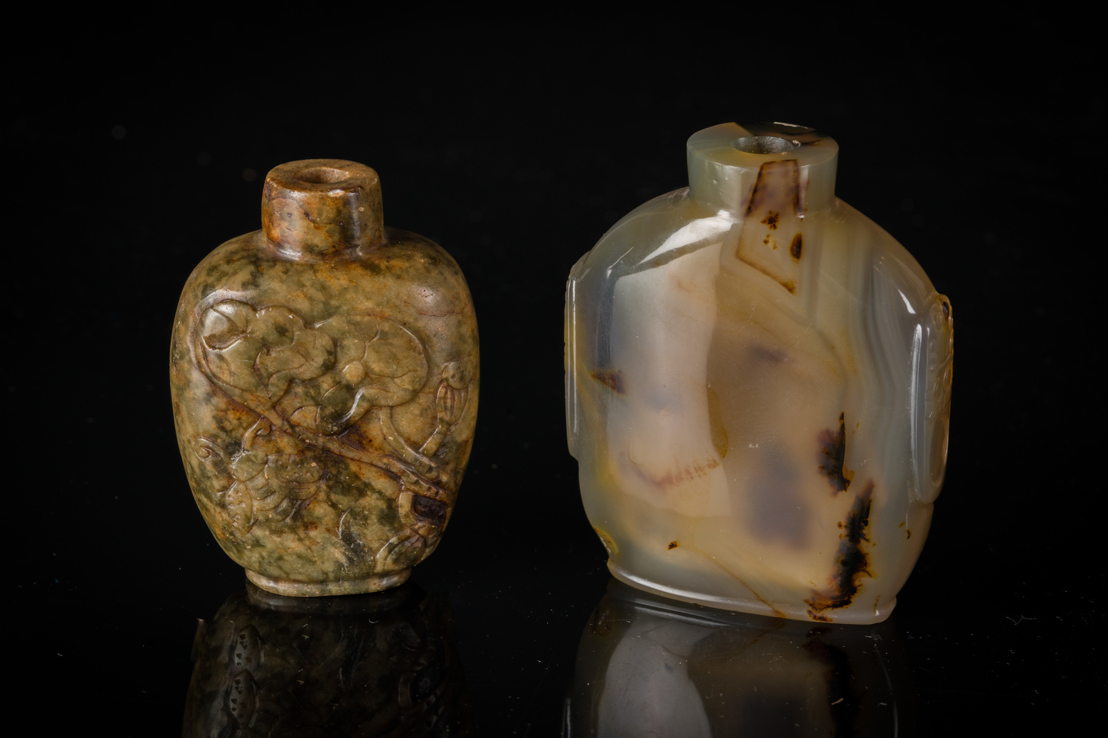 Arte Cinese Due tabacchiere: una in agata ed una in giada Cina, XIX secolo ....