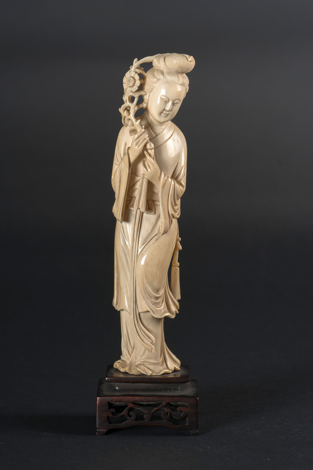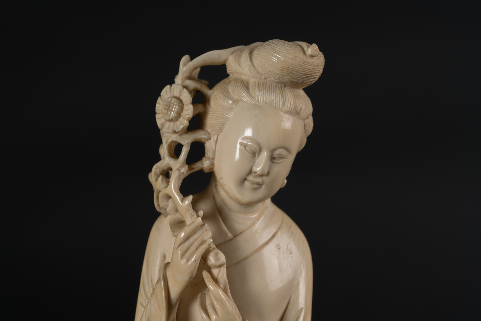 Chinese Art An ivory figure of Guanyin holding a blossoming branch