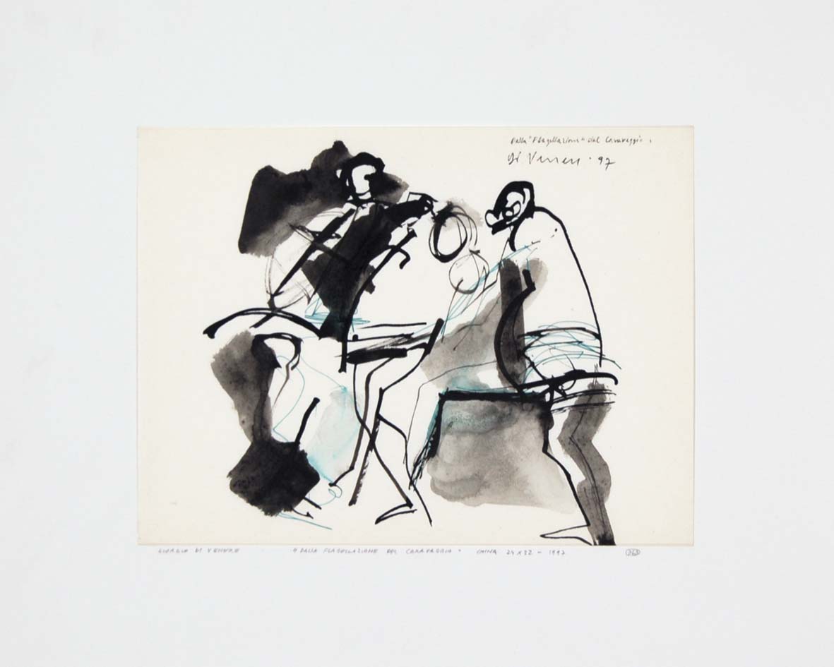 DI VENERE GIORGIO Mestre 1927 Dalla flagellazione del Caravaggio 1997 disegno a china su carta 24x32 cm firma data e titolo in alto a destra e in basso