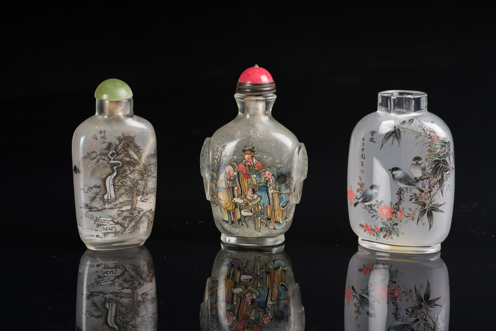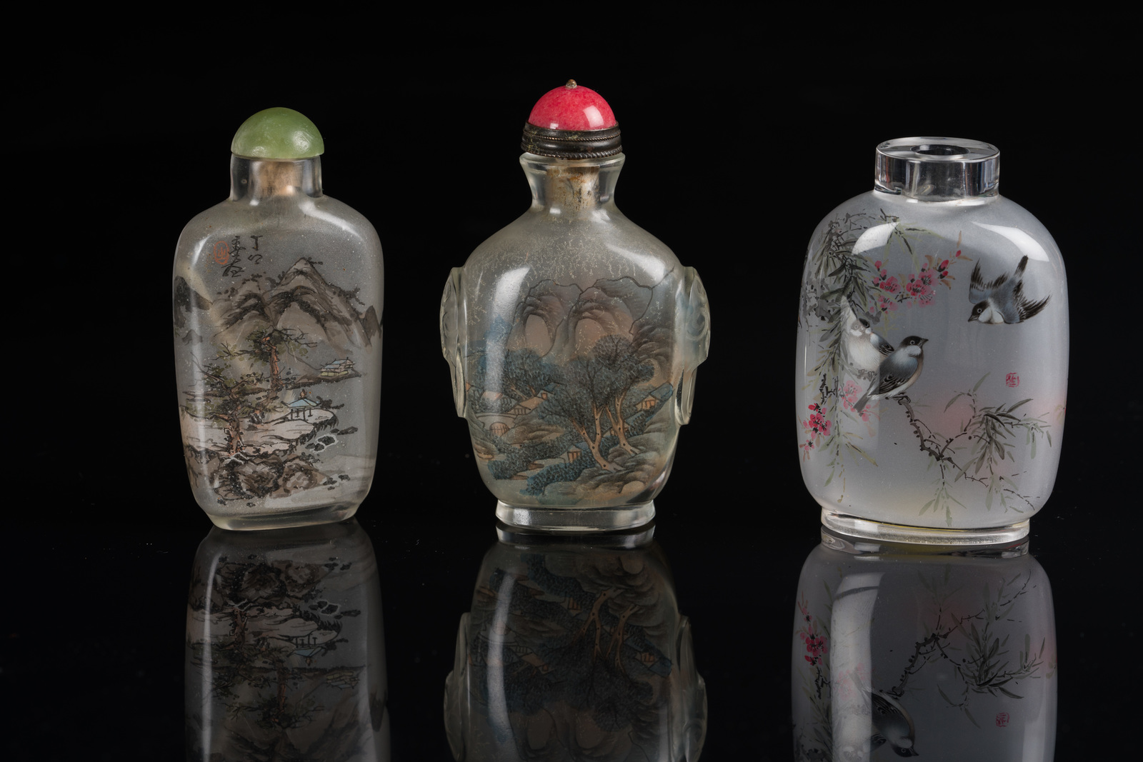 Lot 33 | Arte Cinese Tre tabacchiere in vetro dipinto internamente Cina, XIX secolo ....