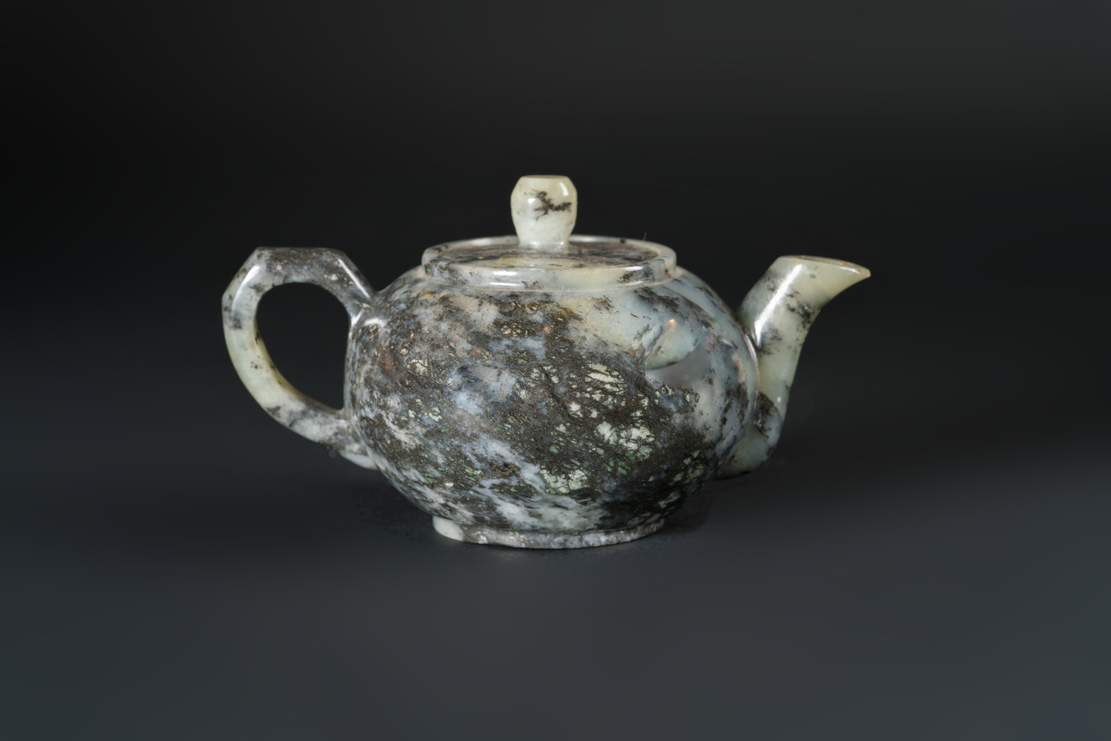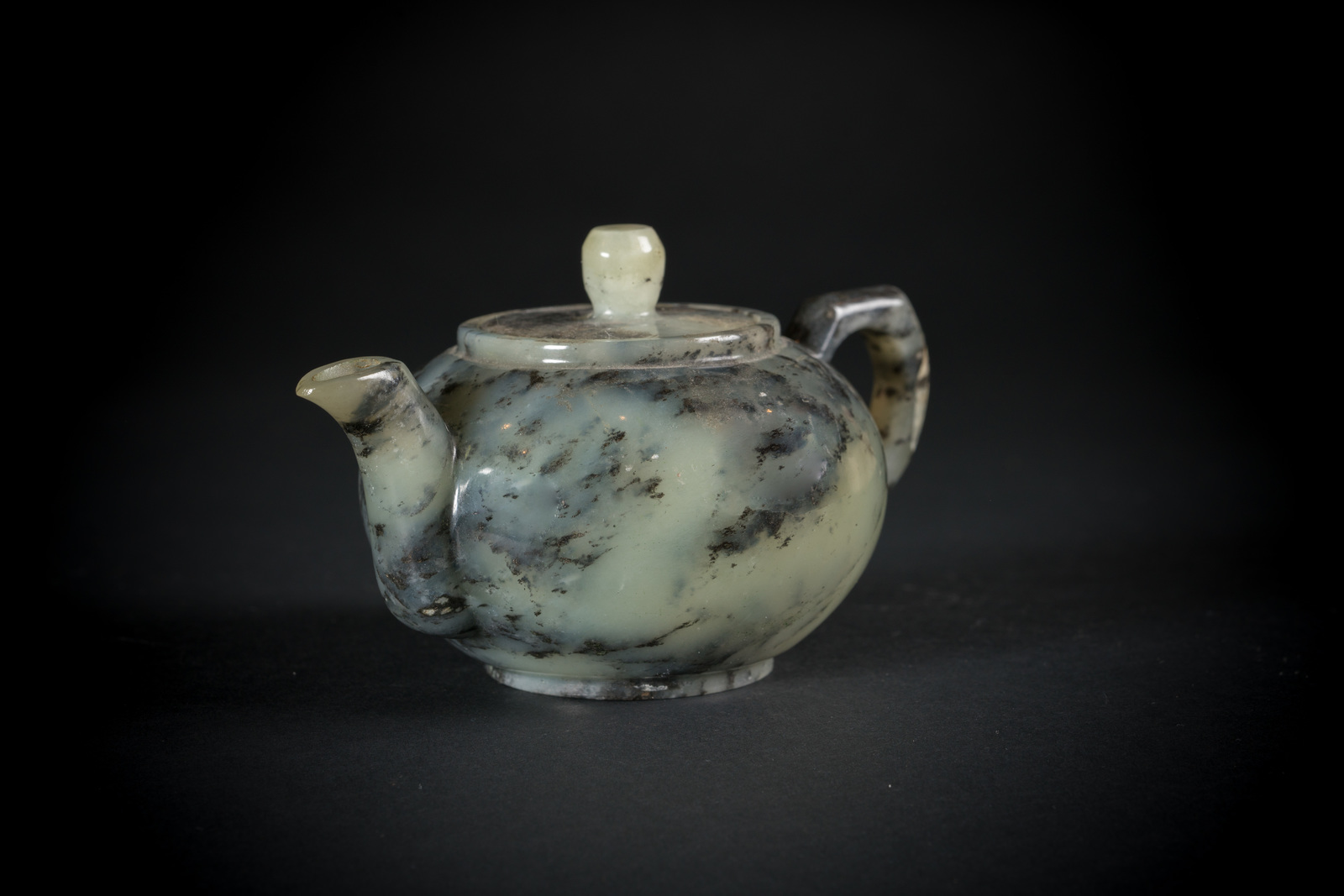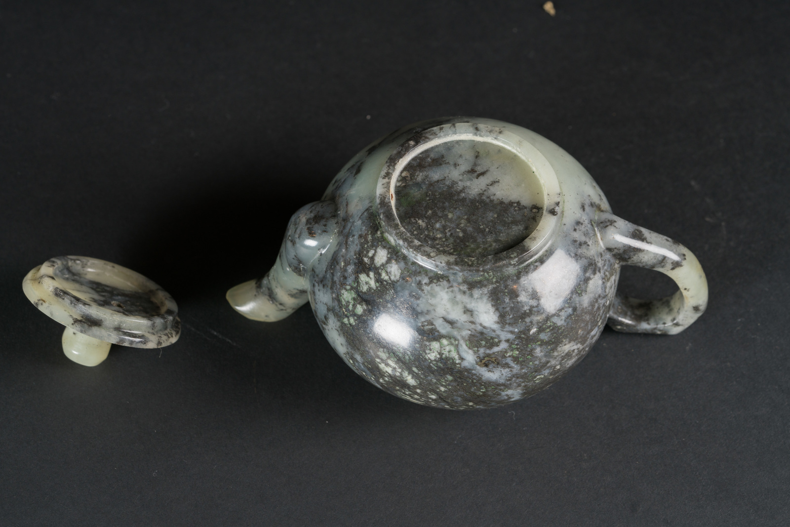 Chinese Art A small speckled jade teapot and cover with bamboo shaped handle