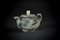 Arte Cinese Teiera in giada verde marezzata con manico sagomato a bamboo