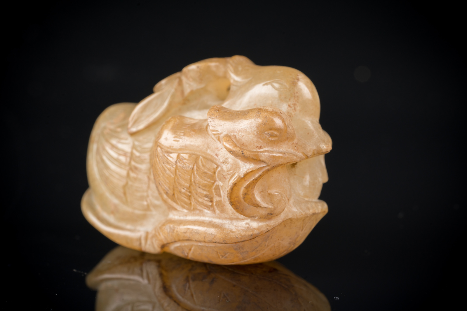 Arte Cinese Intaglio in giada raffigurante due anatre