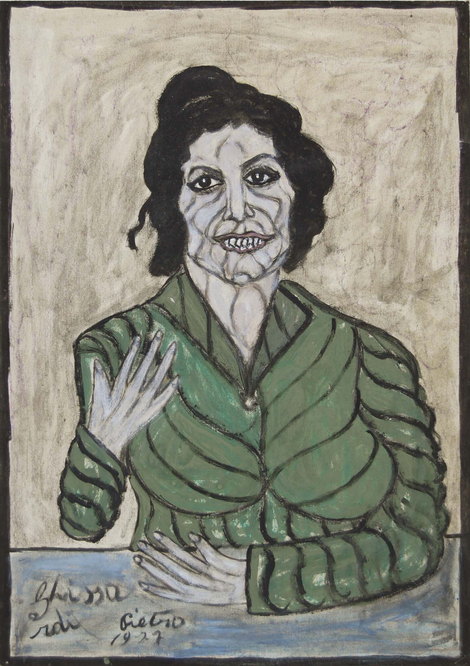 GHIZZARDI PIETRO Mantova 1906 - 1986 Modella 1977 tecnica mista su cartoncino 101x71,5 cm firma e data in basso a sinistra firma e titolo al retro autentica dell'Autore al retro e su foto