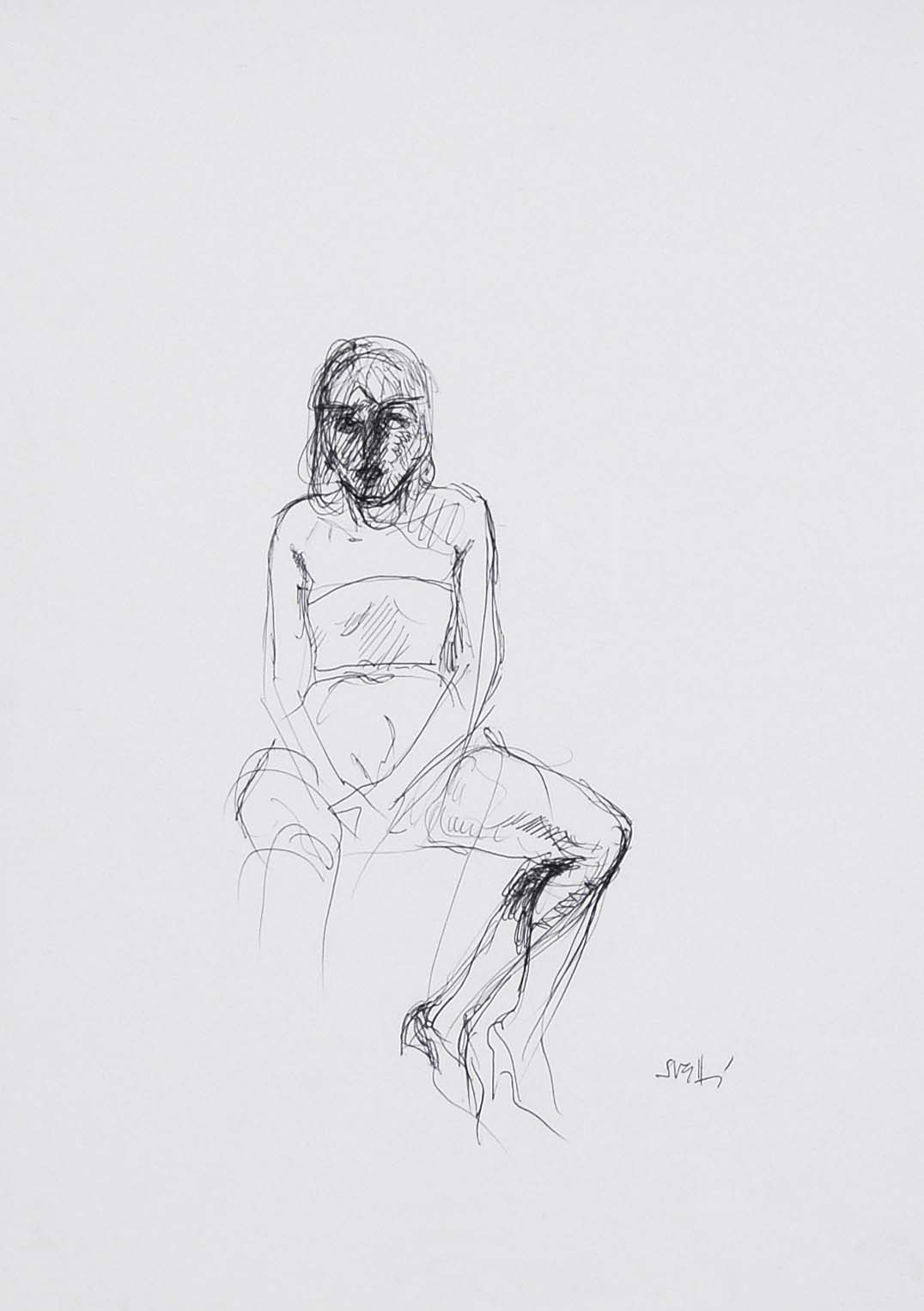 SUGHI ALBERTO Cesena 1928 Modella seduta 2000 inchiostro su carta 42x30 cm firma in basso a destra Bibliografia "Alberto Sughi" I quaderni del disegno italiano 2003 ed. La Scaletta pag. 52 autentica dell'Autore su foto esposizioni Galleria La Scaletta S.Polo di Reggio Emilia