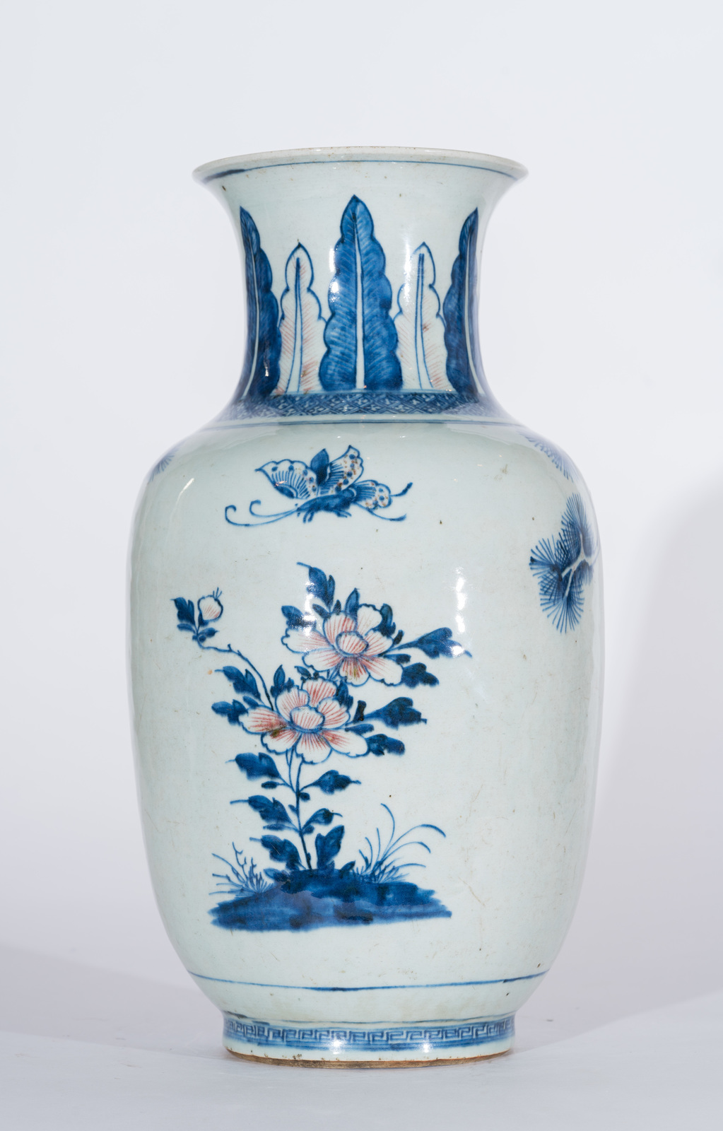 Arte Cinese Vaso in porcellana decorato a motivi naturalistici in blu e rosso...