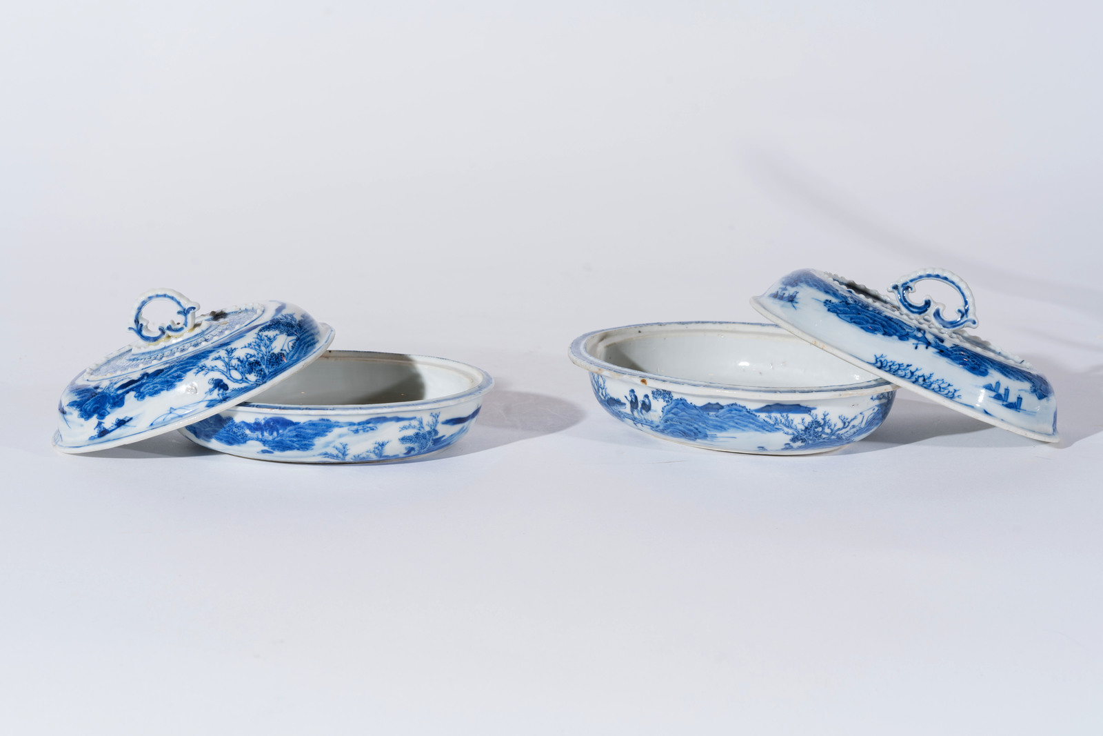 Arte Cinese Due legumiere con coperchio in porcellana bianco blu