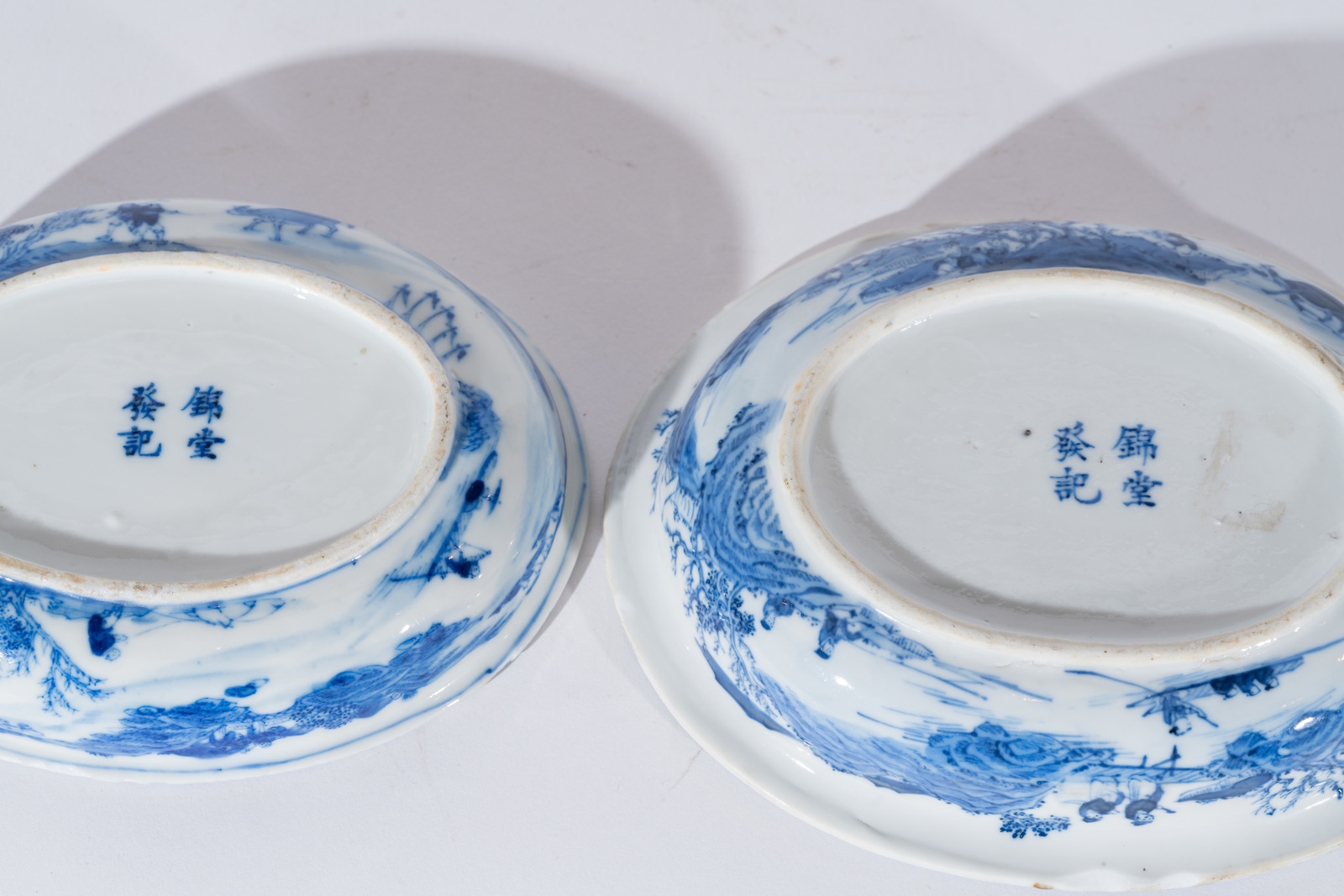 Chinese Art Two blue and white porcelain food boxes and covers bearing a four characters imperial mark painted on the base