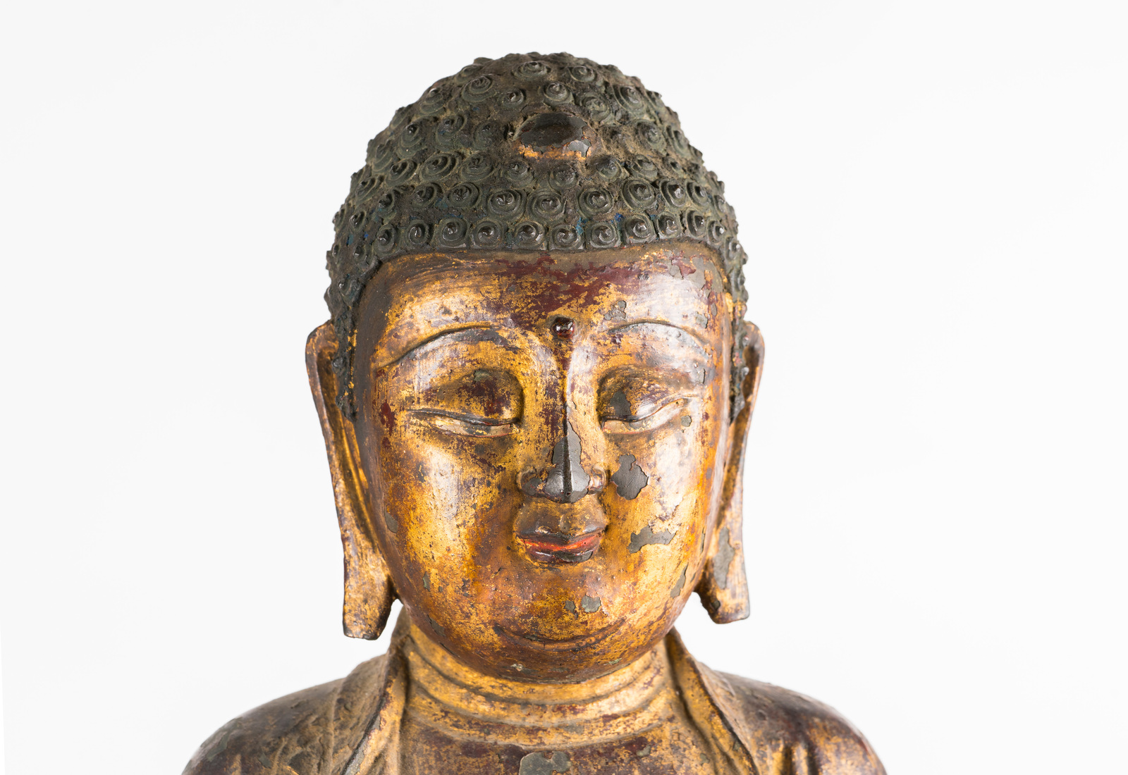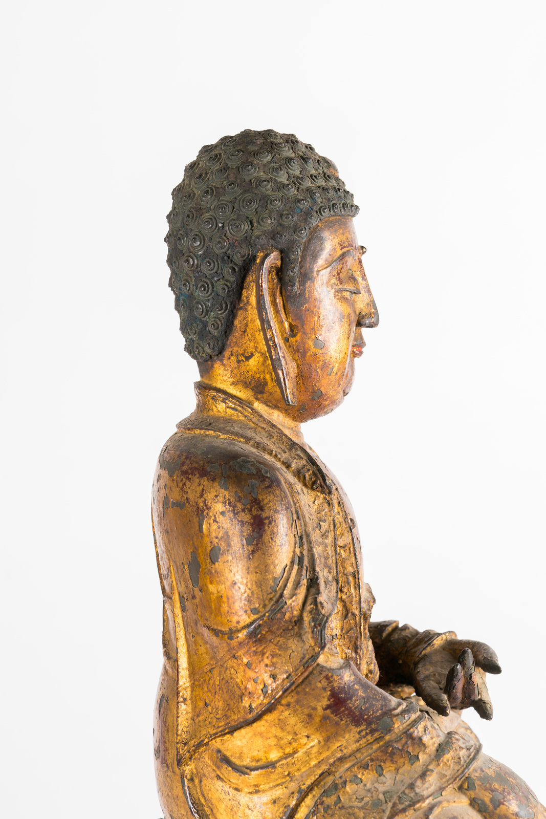 This lot is part of an incomplete set portraying the five transcendent Buddhas. In this catalogue are also available two more pieces from the same set: Amitabha lot nr.145 and Ratnasambhava lot nr.146.