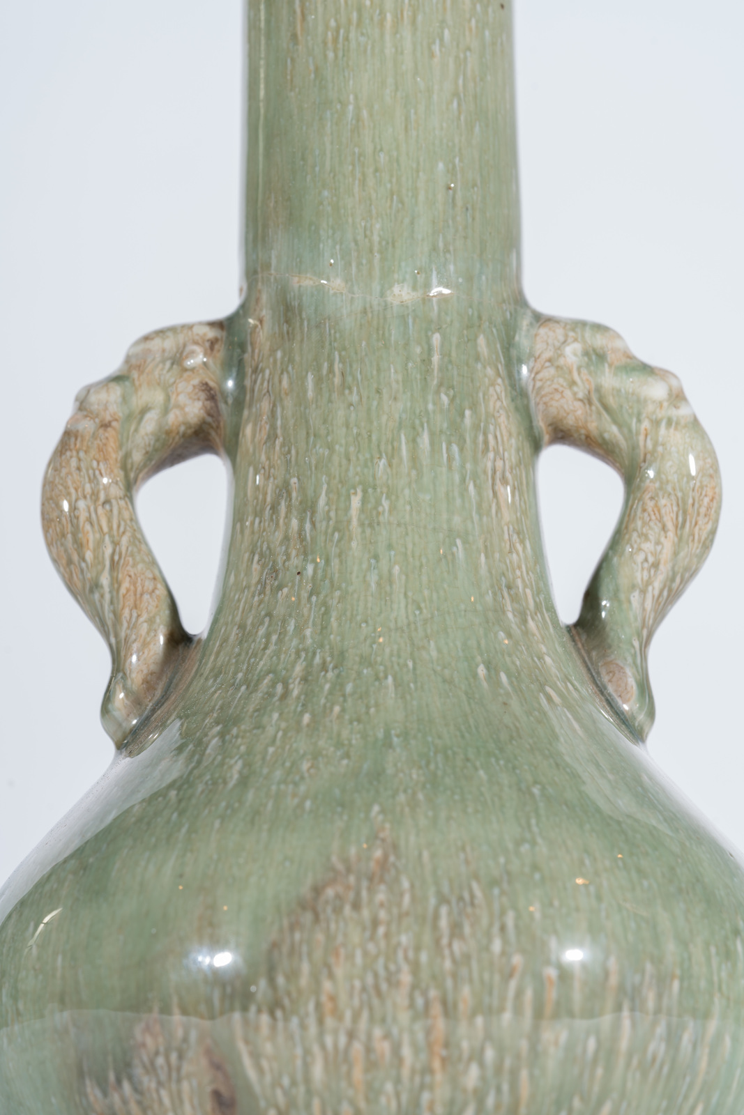 Arte Cinese Bottiglia in ceramica con invetriatura flambé nei toni del verde...
