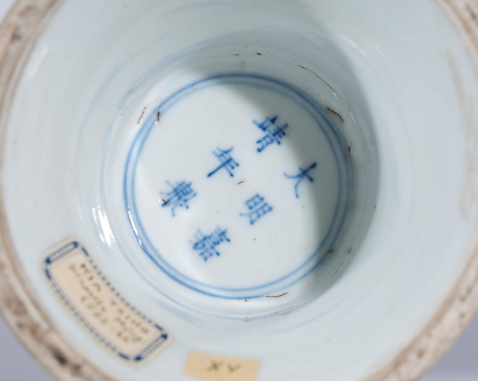 All'interno della base cava si nota il marchio a sei caratteri dipinto in blu sottocoperta entro doppio cerchio.