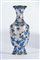 Cina, dinastia Qing, XIX secolo . . Cm 8,50 x 20,00. poggiante su alta base circolare e terminante con collo svasato decorato con motivo di teste di ruyi; la superficie abbellita da fiori blu e azzurri su sfondo chiaro geometrico.