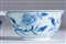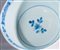 Cina, dinastia Qing, XVIII secolo . . Cm 8,50 x 4,50. poggianti su disco, la superficie dipinta in blu sottocoperta con elementi floreali all'esterno, sul bordo e nel tondo centrale interno.