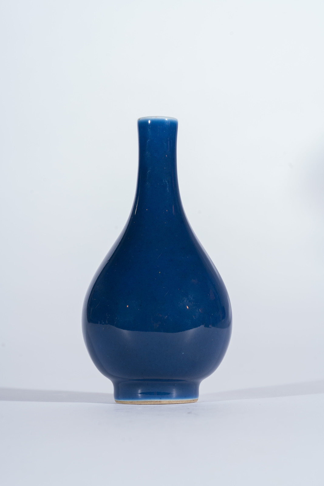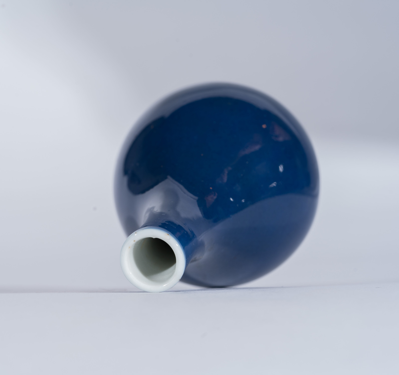 Arte Cinese Bottiglia in porcellana monocroma blu Cina, dinastia Qing, XVIII...