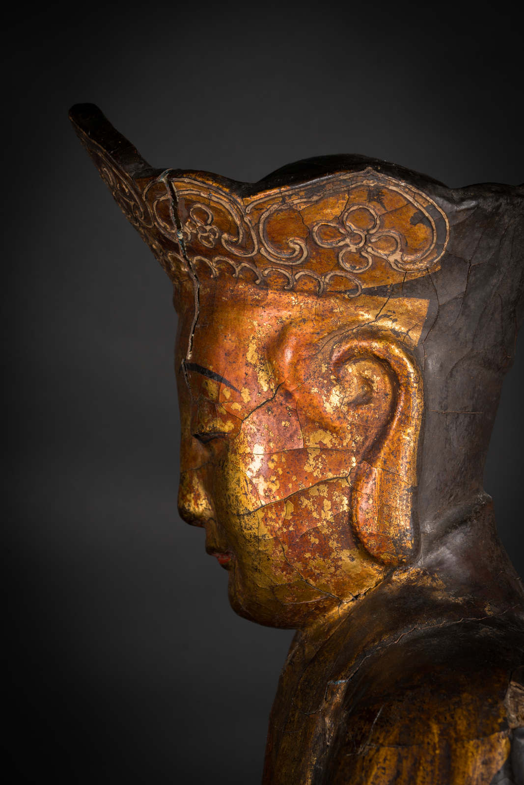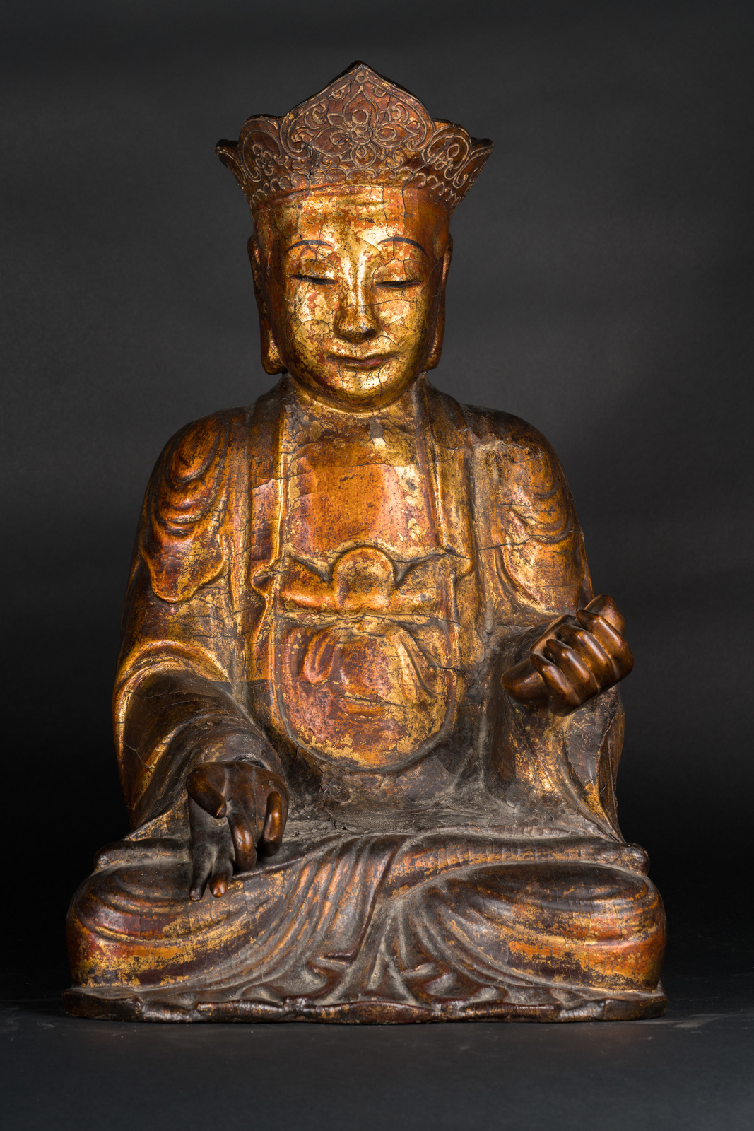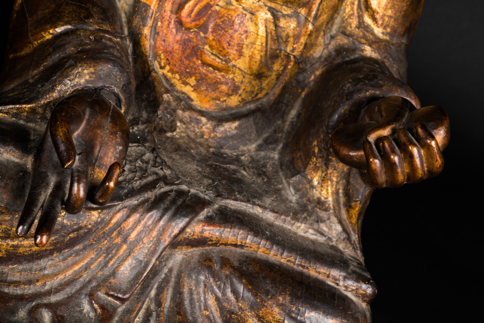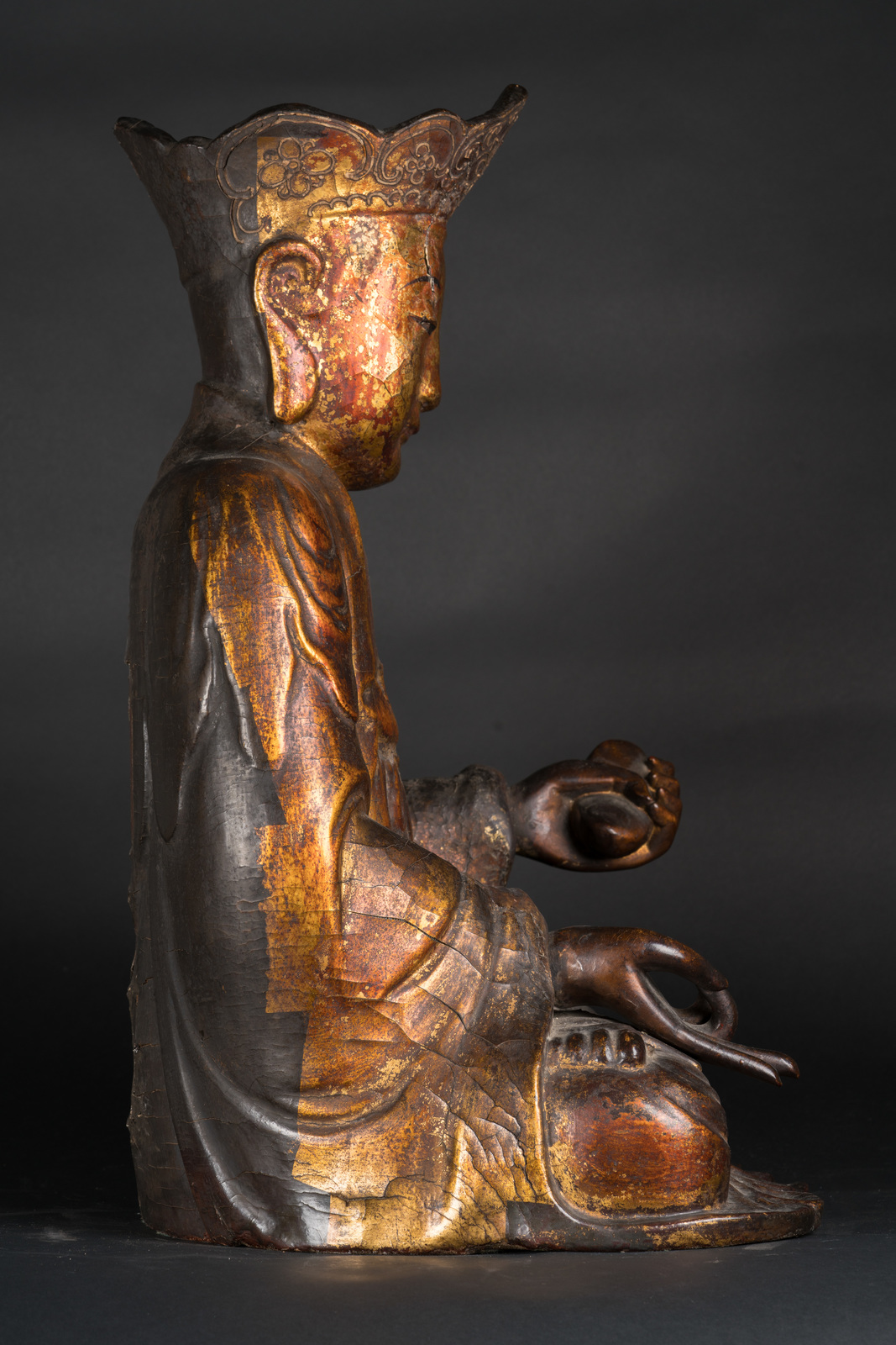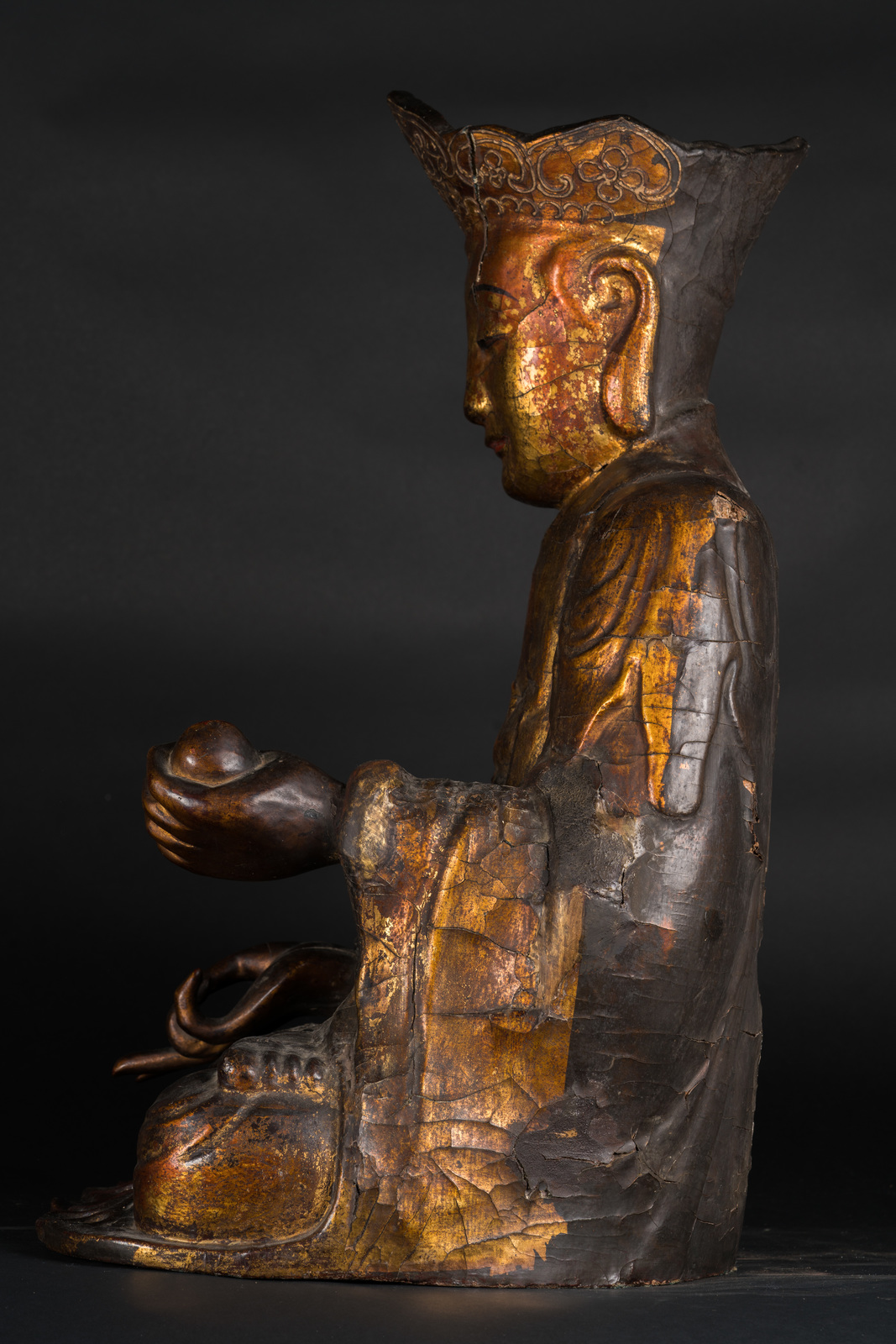 Chinese Art A wooden lacquer seated figure of one of the Cosmic bodhisattva China, Kangxi period, 17th century . . Cm 70,00.