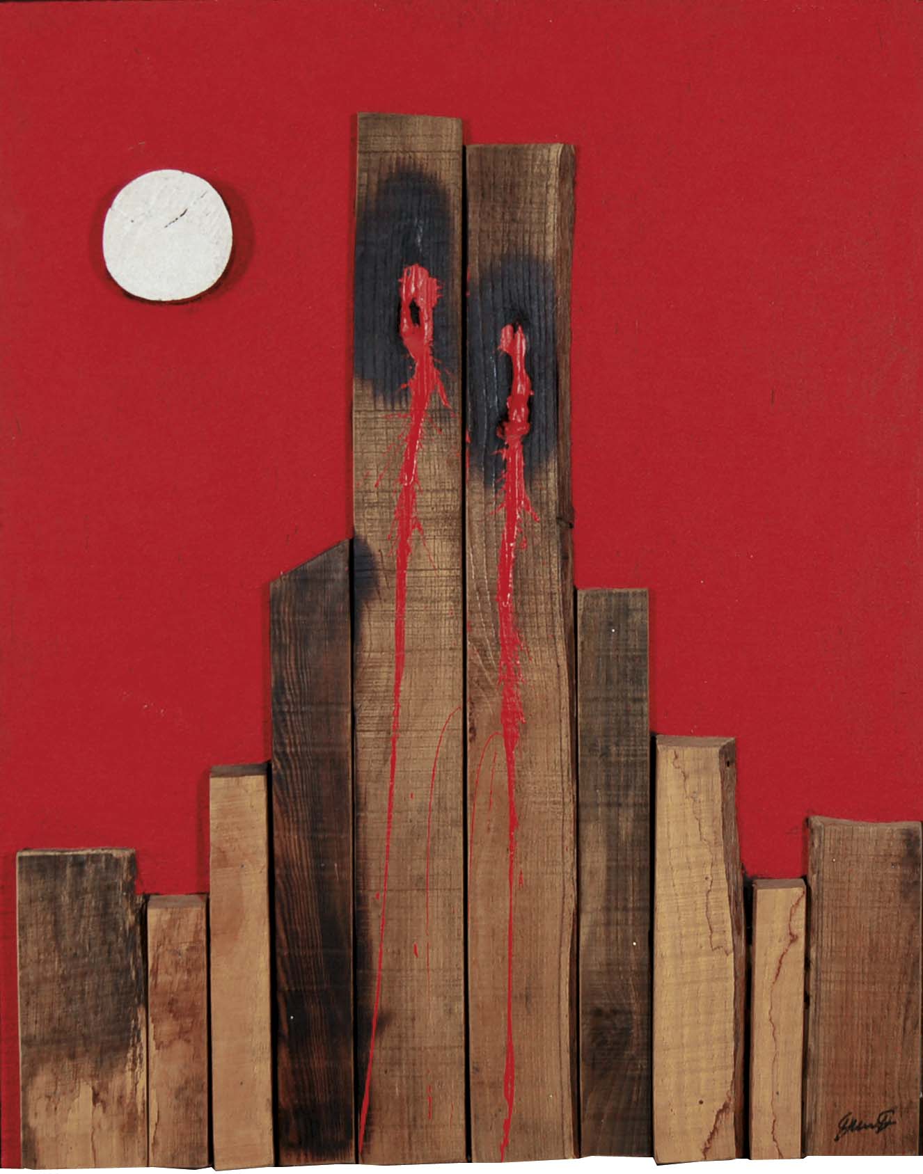 DE LUTTI PIERLUIGI Monfalcone 1959 Doppia ferita tecnica mista su tavola 100x80 cm firma in basso a destra autentica dell'Autore nr. Rif. 1319TM su foto esposizioni Project Space New York; Giò Arte Mestre - timbri al retro