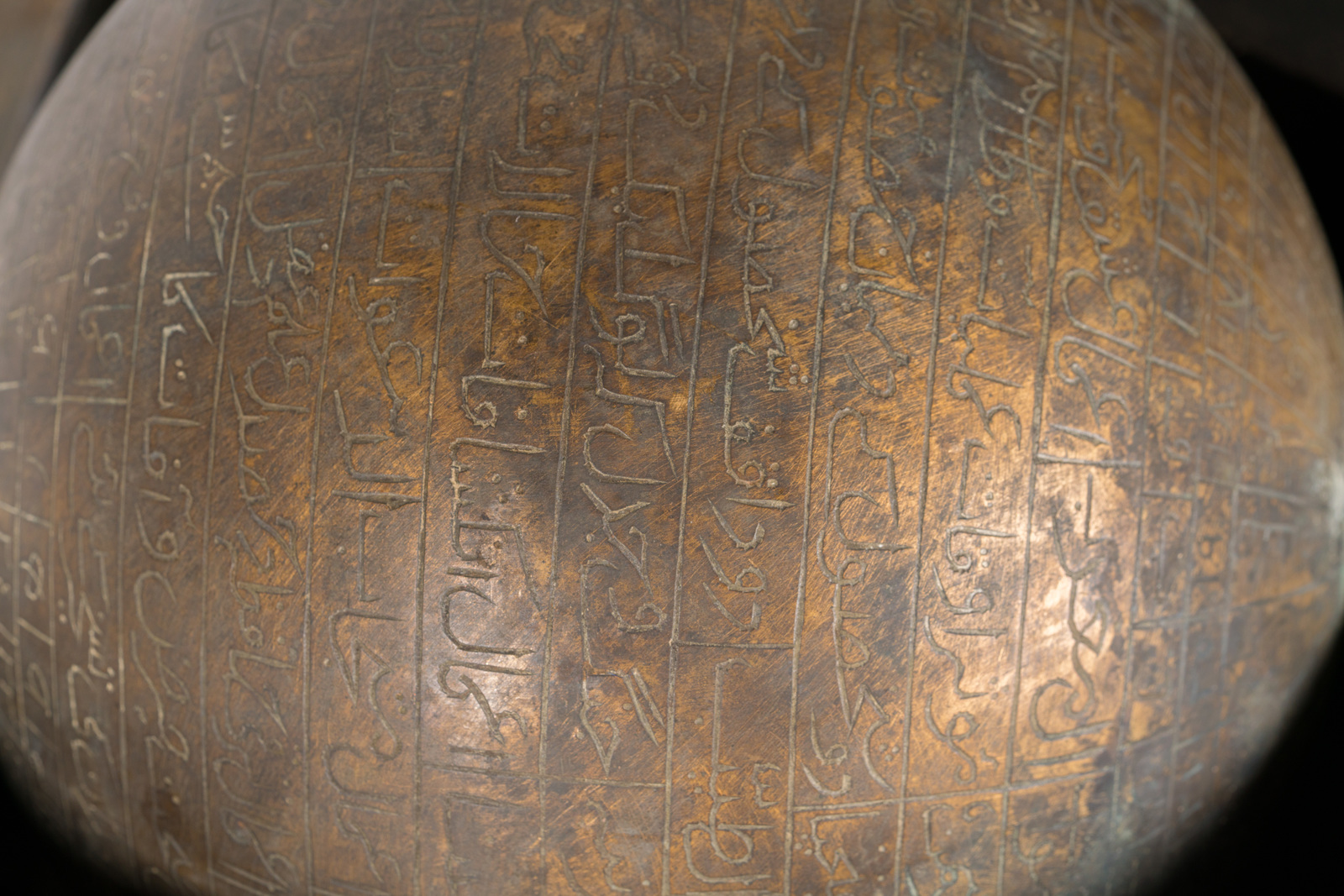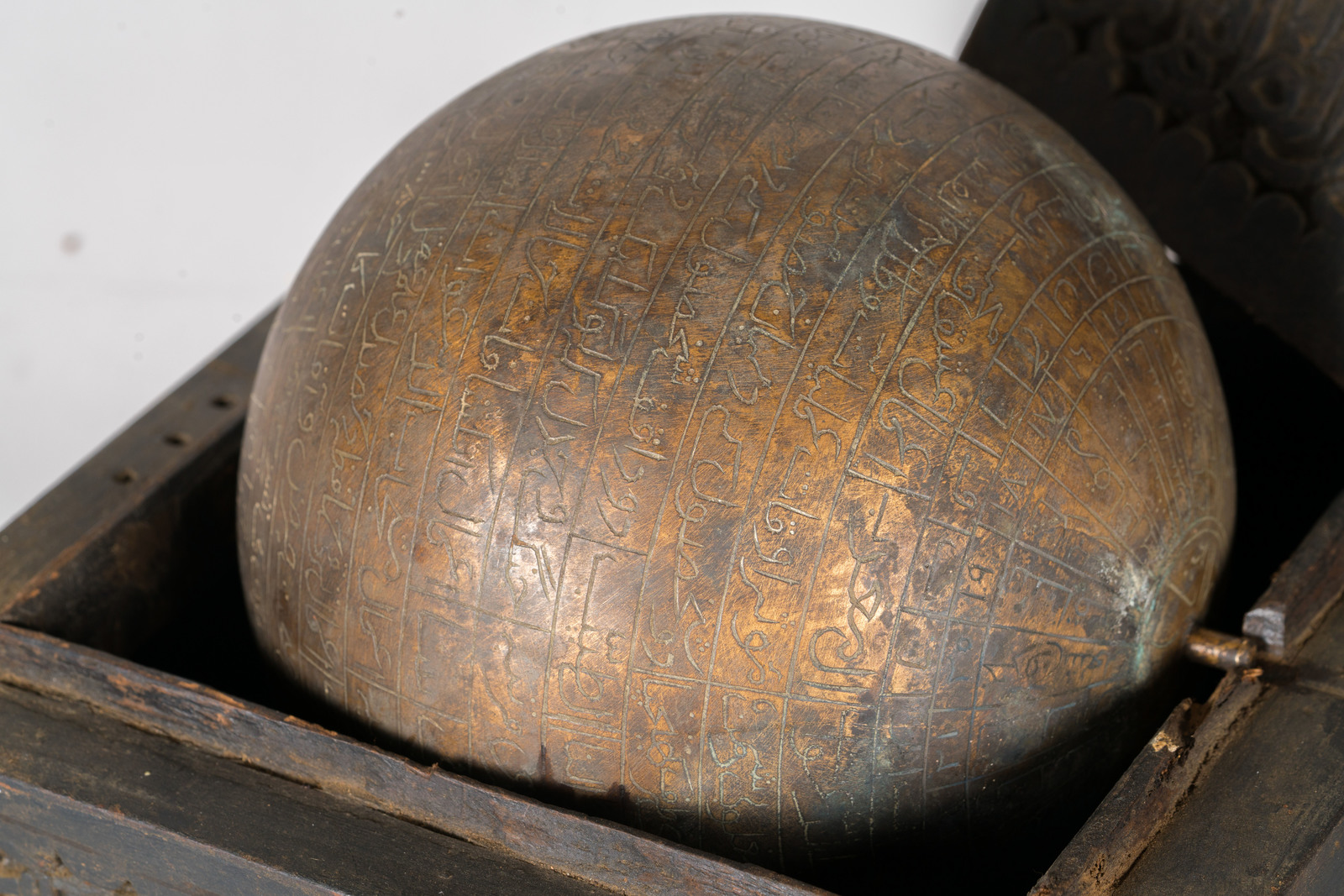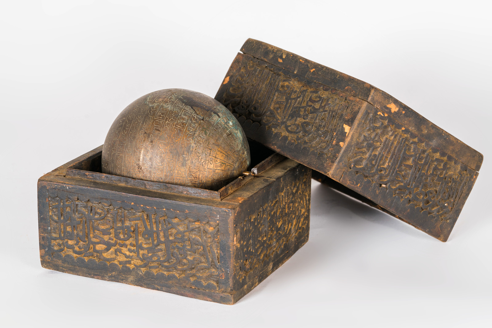 Islamic Art Celestial globe with calligraphic wooden box