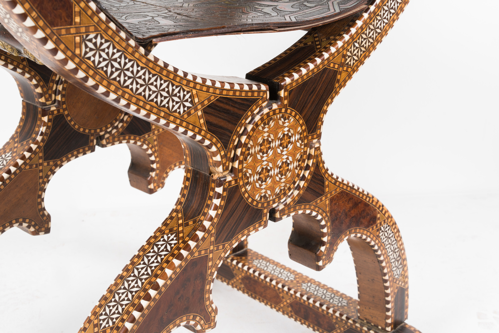 Islamic Art A wooden Hispano-moresque armchair inlaid with ivory, bone and dyed wood