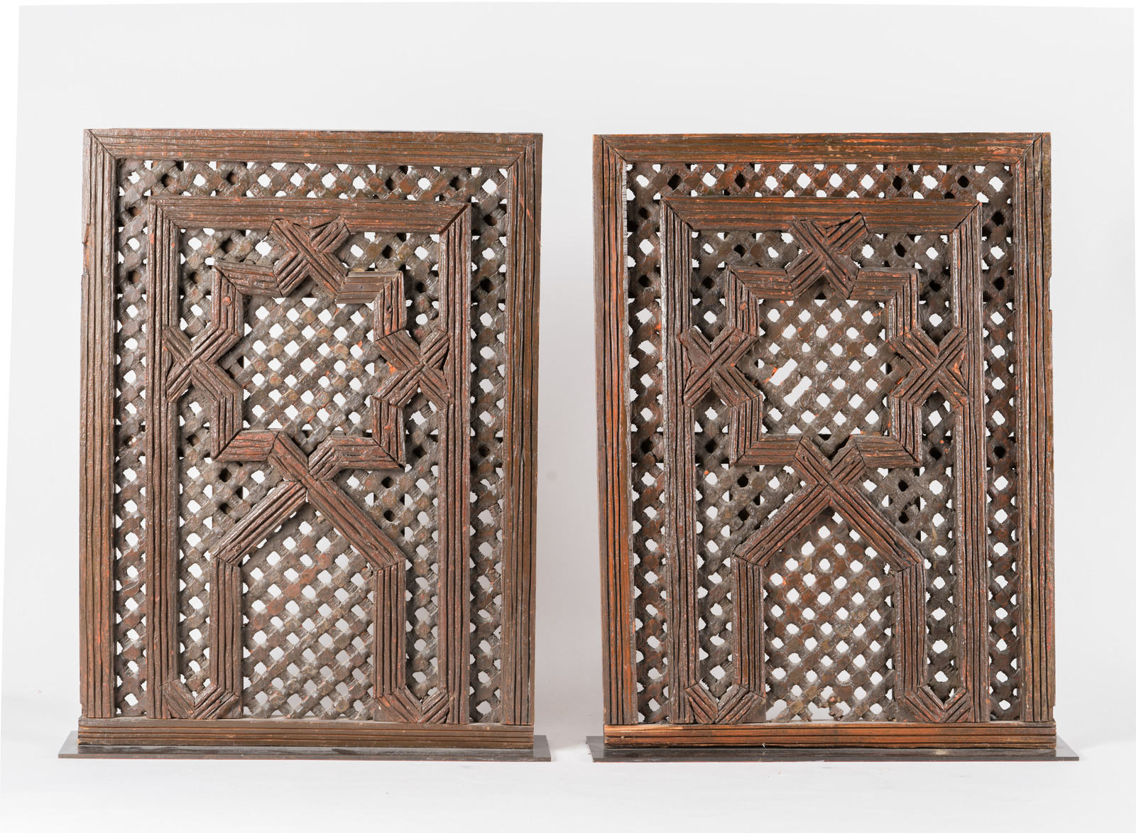 Arte Islamica Coppia di schermi in legno intagliato e traforato