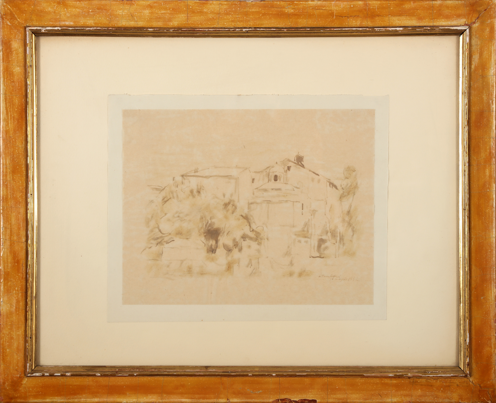 TAMBURI ORFEO (1910 - 1994) Senza titolo. 1942. Tecnica mista su carta. Cm 26,50 x 20,00. Firma e anno in basso a destra. Cornice presente