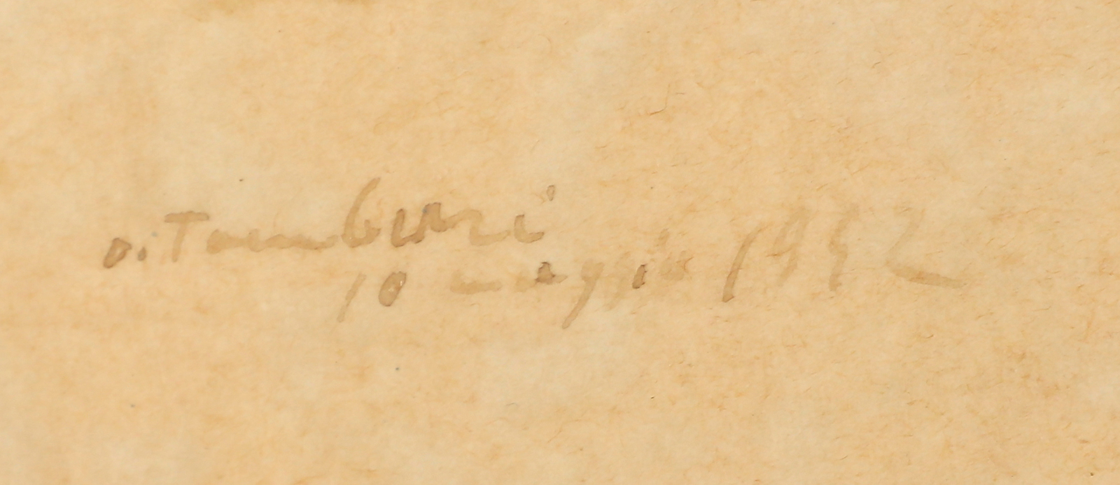 TAMBURI ORFEO (1910 - 1994) Untitled. 1942. Mixed media on paper. Cm 26,50 x 20,00. Signature and year lower right. Cornice presente
