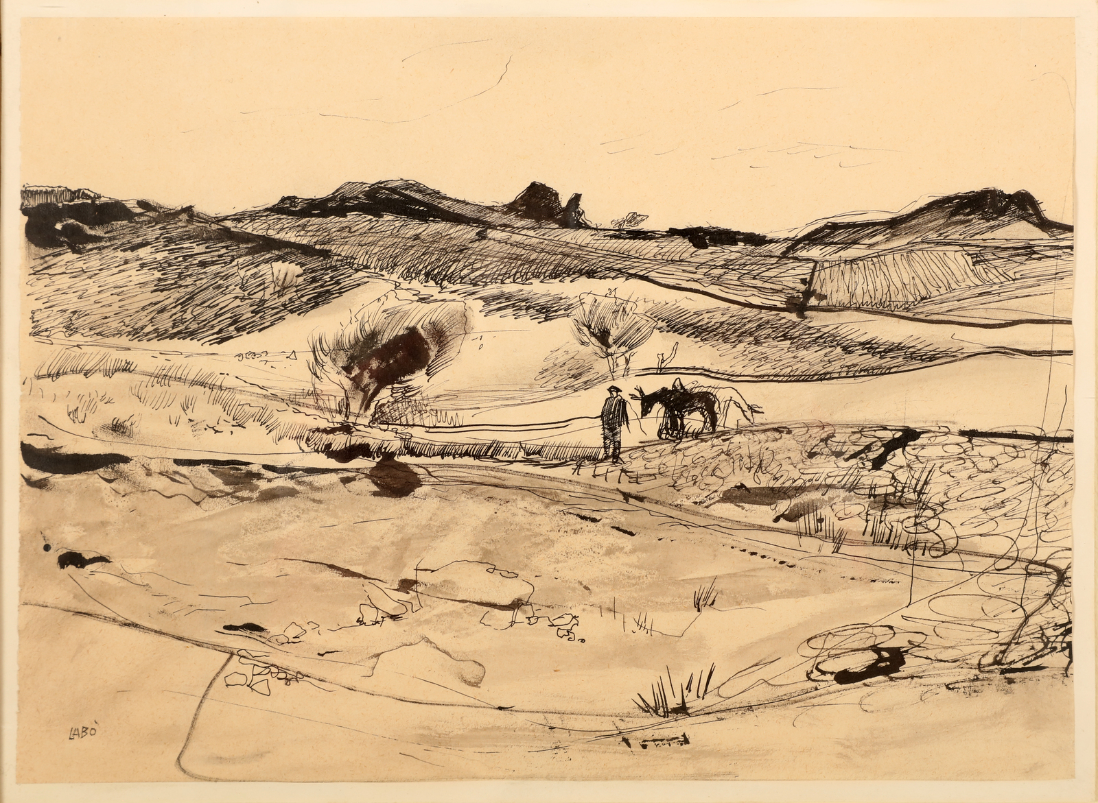 LABO SAVINIO (1899 - 1976) Senza titolo. Tecnica mista su carta. Cm 31,00 x 23,00. Firma in basso a sinistra. Cornice presente