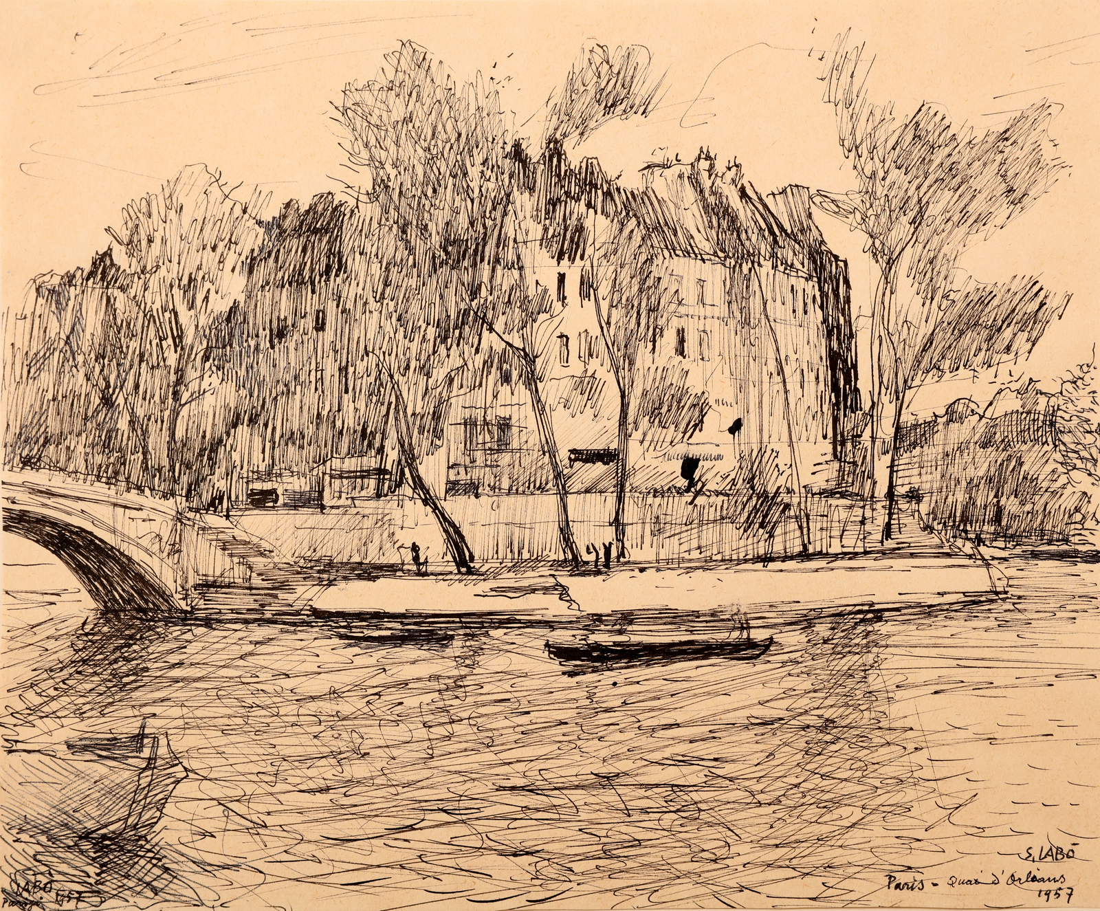 LABO SAVINIO (1899 - 1976) Paris. 1957. Ink on paper. Cm 28,00 x 23,50. Title, signature and year lower left and lower right.