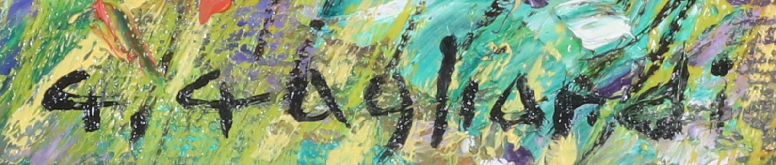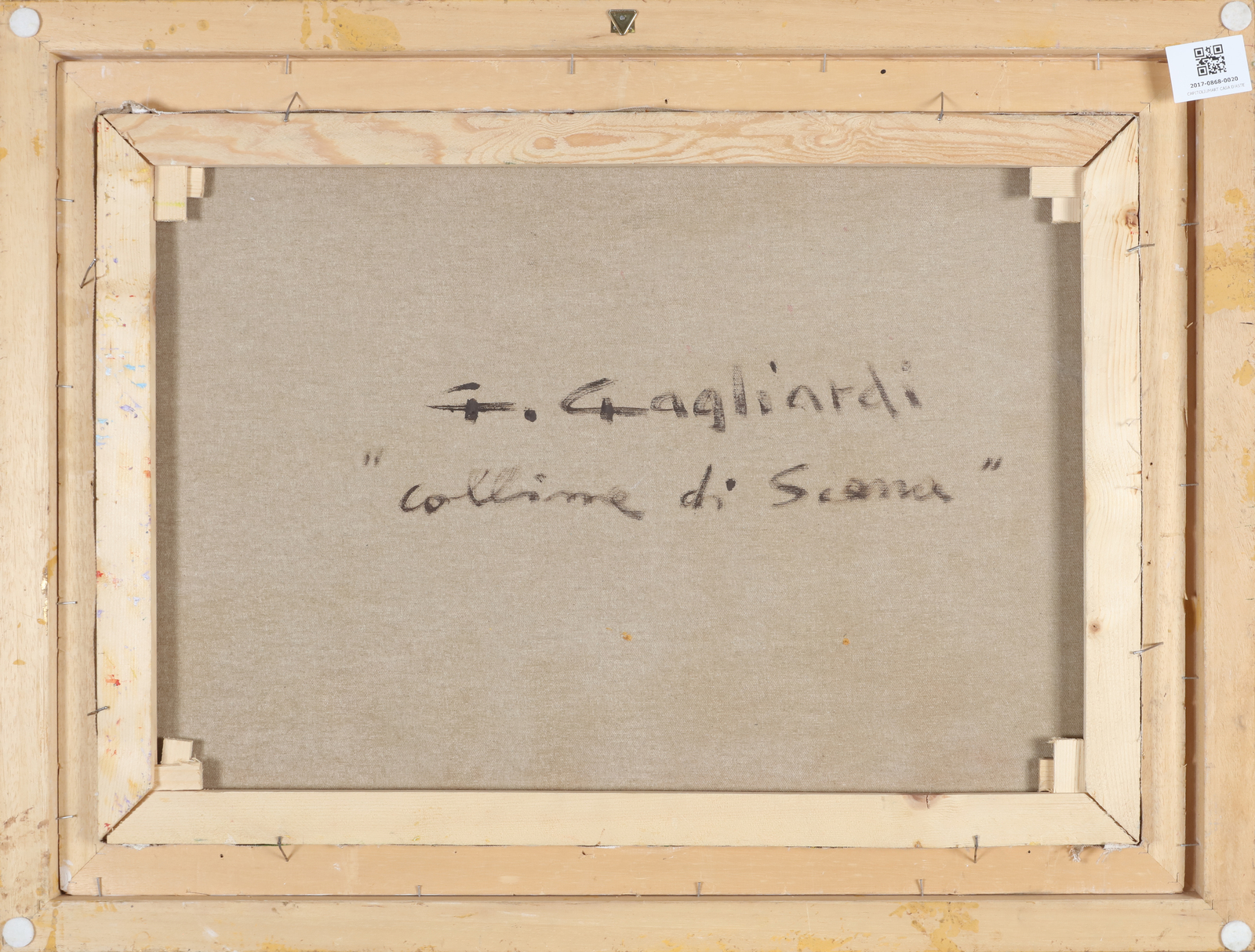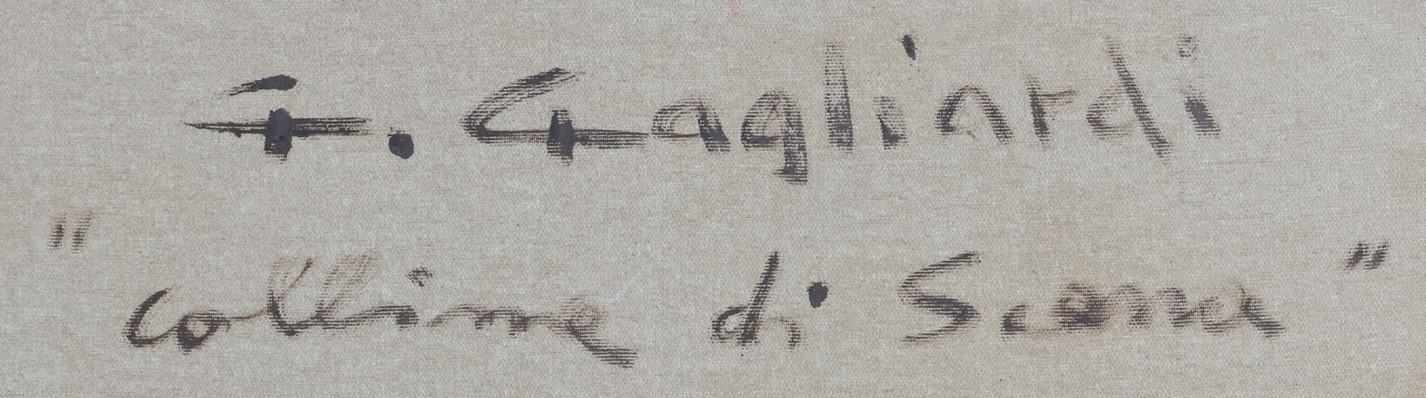 GAGLIARDI GIUSEPPE (n. 1896) Collina di Scena. Olio su cartone. Cm 70,00 x 50,00. Firma in basso a destra. Al retro titolo e firma. Cornice presente
