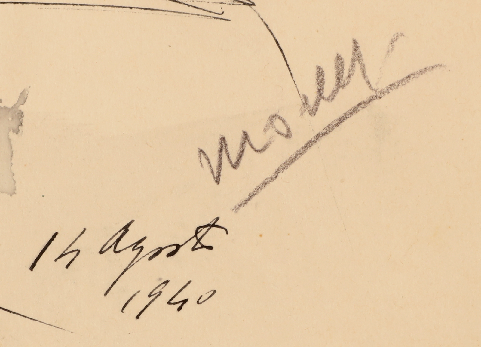 MORELLI ENZO (1896 - 1976) Senza titolo. 1940. Tecnica mista su carta. Cm 40,00 x 20,00. Firma e anno in basso a destra.