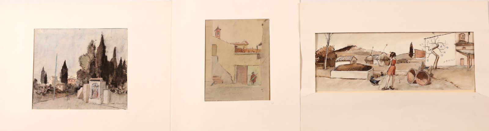 BERNARDINI PIETRO (1892 - 1974) Lot consisting of 3 works. Mixed media on paper. . All works are signed lower, Works size: 16.5 x 42 cm; 21 x25 cm; 23x18 cm.