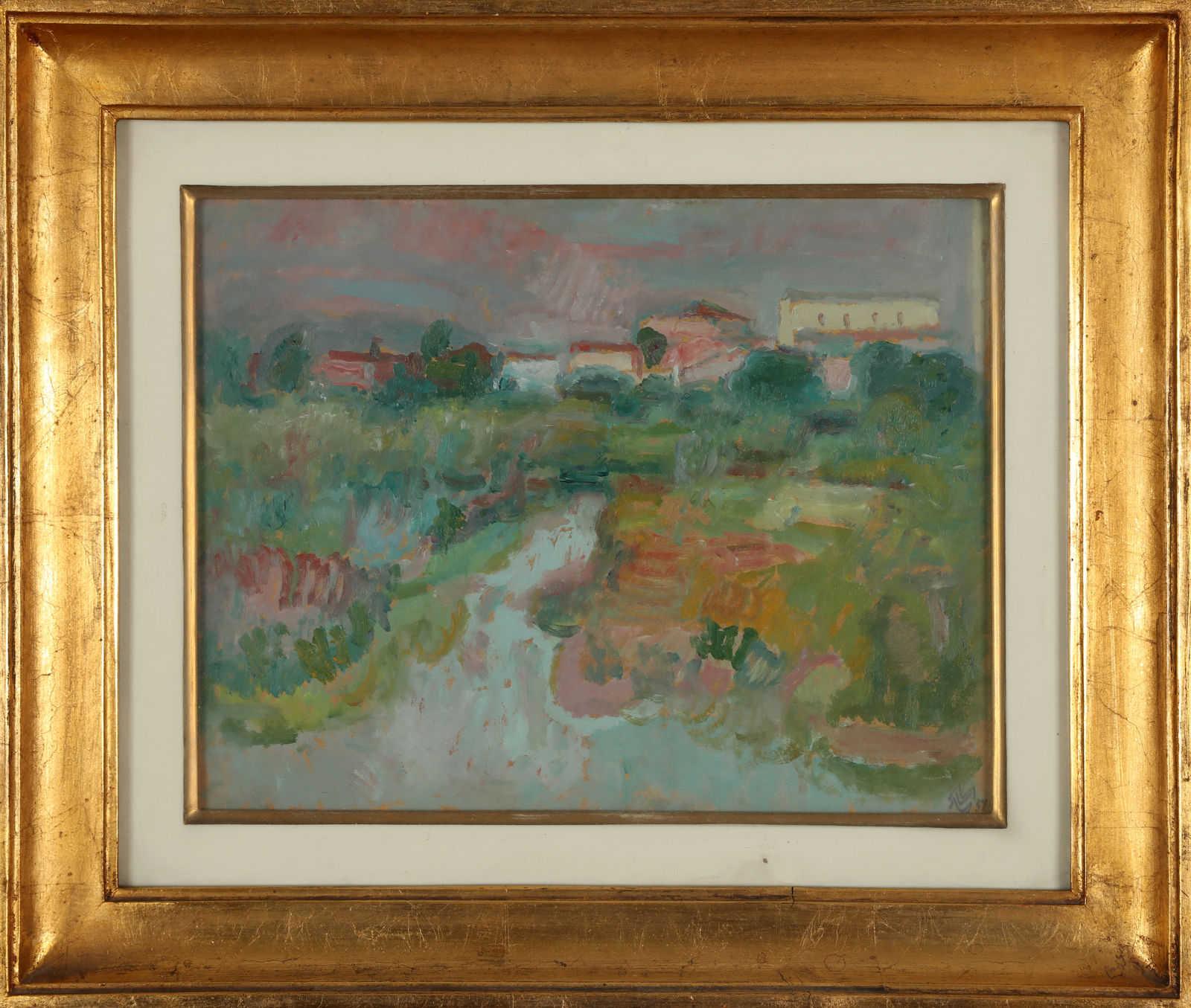 VELLANI MARCHI MARIO (1895 - 1979) Landscape. 1951. Oil on pressboard. Cm 29,50 x 23,00. Signature and year lower right.. Cornice presente