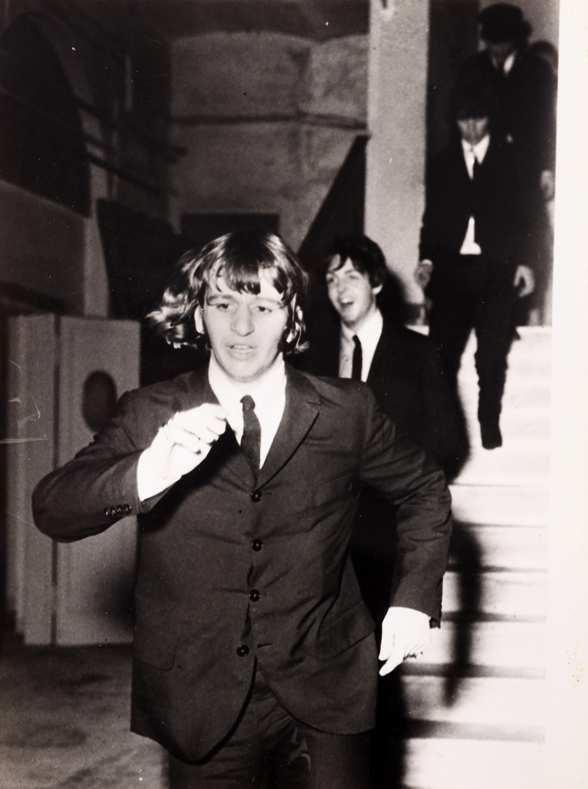 COLUZZI GUGLIELMO (n. 1927) Beattles a Roma. Fotografia in bianco e nero. Cm 18,00 x 24,00. Al retro credito Guglielmo Coluzzi.