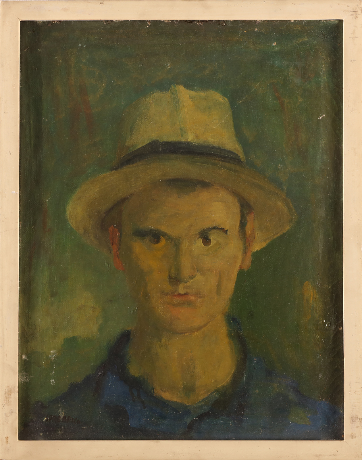SPREAFICO LEONARDO (1907 - 1974) Portrait. Oil on canvas . Cm 35,00 x 45,00. Signature lower left and at the back. Cornice presente